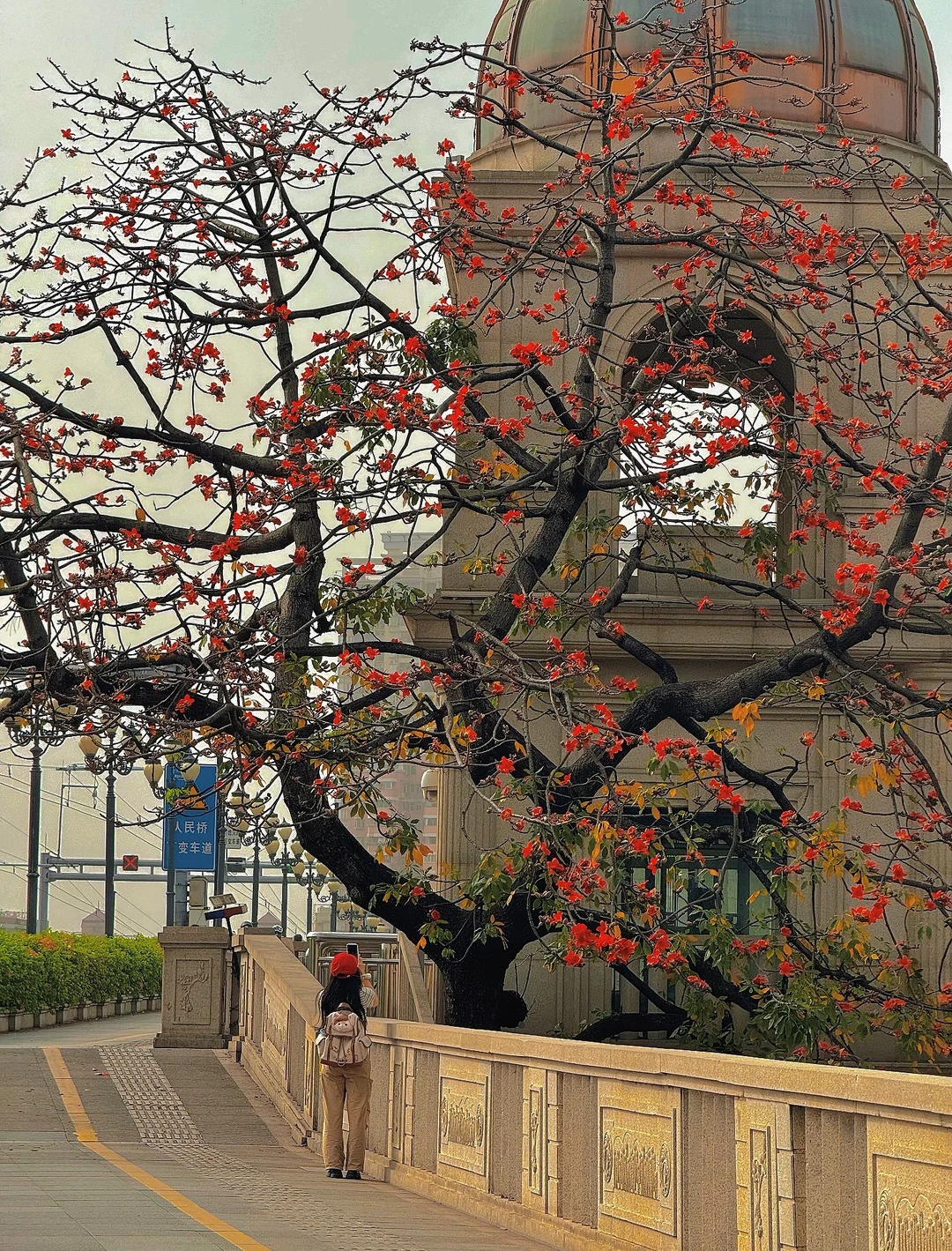 人民桥是广州第二座跨江大桥,自带复古文艺气息,这里一直都吸引着无数小伙伴过来拍照,如今盛开的木棉花与桥上欧式穹顶相映,简直有被美到了
