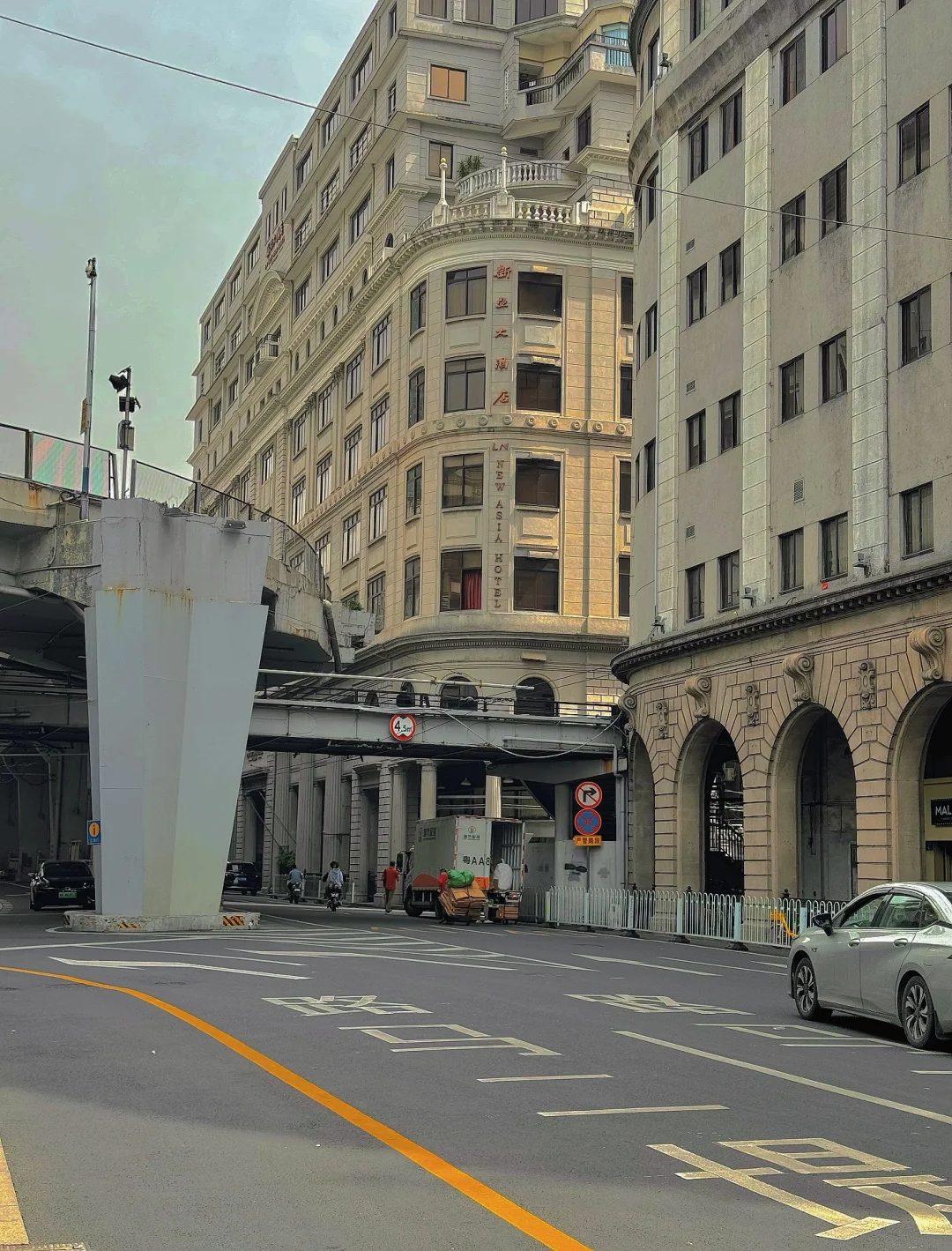 这座连接复古骑楼的天桥,简直是拍复古港风秘境的神级机位,铁艺栏杆与骑楼街景结合,自带复古港风氛围感,可以直接定位“新华大酒店”就找到了