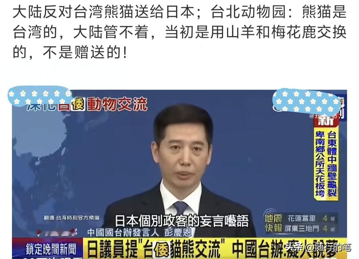 台北动物园强调在台的大熊猫所有权属于台湾。 台媒关注日本议员要交换台湾大熊猫的消息,近日采访台北动物园,特别强调在台的熊猫所有权属于台湾,是当初以一对台湾野山羊及梅花鹿交换的。 坦白说,台北动物园回应记者的言论虽然是事实,但态度就非常令人恶心,没有一点感恩之心。对于日本换大熊猫的要求没有明确的拒绝态度,却特别强调大熊猫没有返还大陆的期限。 当初大陆以一对大熊猫换野山羊和梅花鹿,严格上来说是价值不对等的交换,是大陆念在两岸一家人的关系上不计较而已,如果不是大陆的大方,念在这层关系,怎么会这么轻易以国宝大熊猫换了平平无奇的野山羊和梅花鹿?但是,现在不仅台北动物园没有念大陆的好,不懂得感恩,连蒋万安也三缄其口,既没有明确拒绝日本的想法,也没有答应,态度耐人寻味。