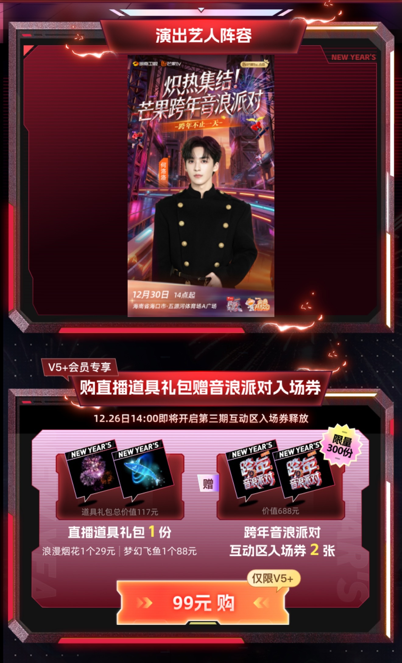 留给内娱的跨年嘉宾不多了破大防了!原来最卷的跨年在马路边!这阵容和互动距离,我真的服!还等啥自己上芒果TV APP搜「跨年音浪派对」买票体验啊,双人票限量300份,快约上好闺闺一起去吧!
