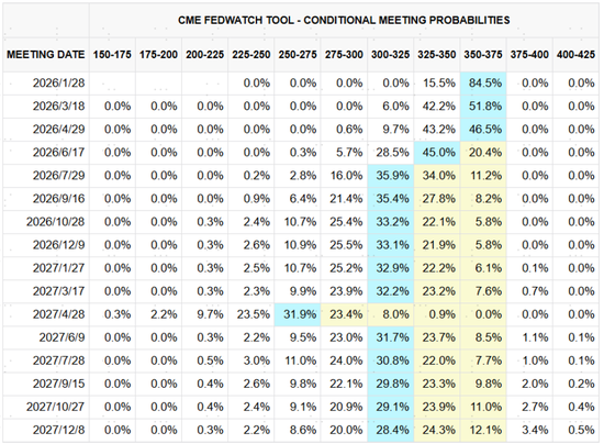 中期来看,现在市场仅预期美联储2026年降息2次,我们认为过于保守。明年5月新任美联储主席上台,且美国通胀下半年或进入下行周期,美联储有条件降息超过2次,十年期利率也可能顺势降至3.5%附近,我们建议耐心等待美债增配时点。