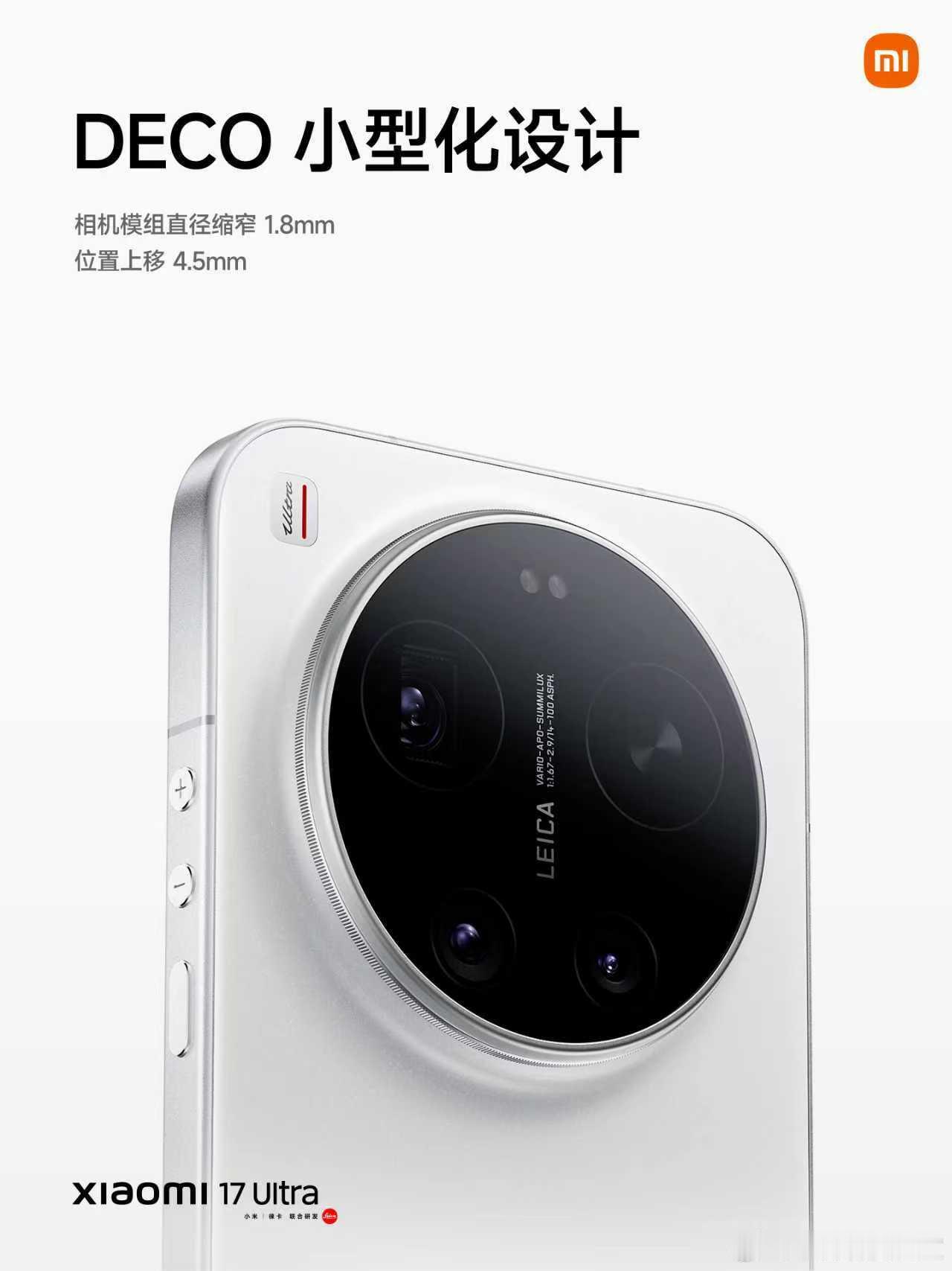 小米17Ultra 巅峰影像科技旗舰,惊艳蜕变。舒适握持|小米Ultra首款2D直屏,纯平立边中框;精致细节|DECO小型化,单手握持舒适不挡手;轻薄突破|小米迄今最薄Ultra,薄至8.29mm。纤薄身形,强悍实力,日常创作“无压力”。小米17Ultra今日发布全新「星空绿」,独特矿石颗粒,如星空闪烁;温柔「冷烟紫」,如烟似幻,优雅再续;经典黑白双色,经典百搭,质感十足。