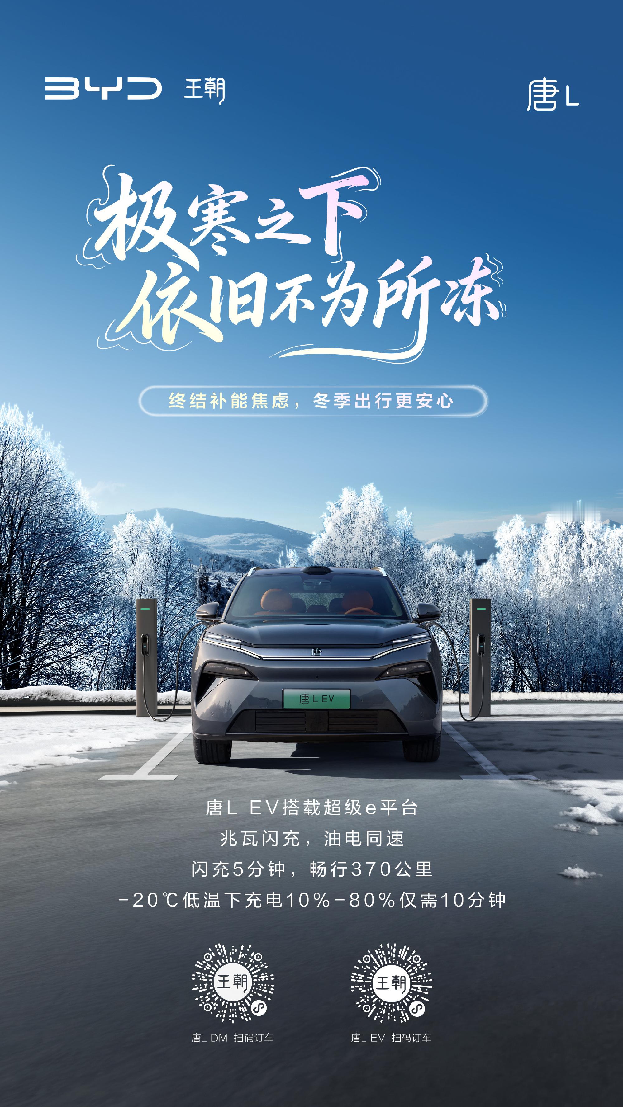 冬季出行,补能无忧唐L搭载超级e平台闪充5分钟,畅行370公里-20℃低温下充电10%-80%仅需10分钟告别冬季充电烦恼,让安心贯穿每一程