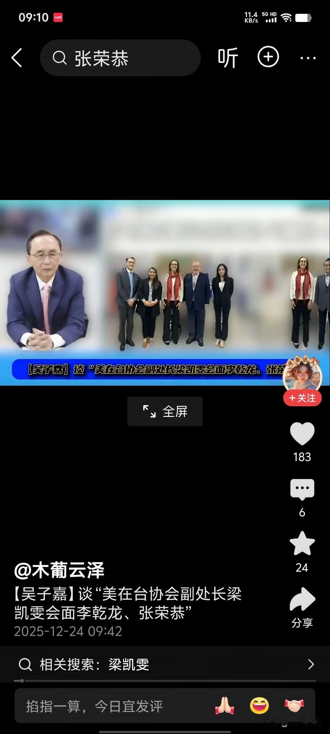 近日,美国驻台协会(Ait)在其脸书上帖文并附有Ait副处长梁凯雯会见国民党副主席李乾龙、张荣恭的合影照片。但国民党方面对这次会面没有发新闻稿,其他媒体也没有报道。 资深媒体人吴子嘉在节目中解读为: 这次国民党两位副主席和Ait副处长会面有两个含义: 一是这两位国民党副主席前不久都有去过大陆,张荣恭还与对台办主任宋涛有见面。美驻台协会有收集情资工作任务,此次与张荣恭详谈就是这个意为。 二是强力警告国民党,美国🇺🇸国会对台110亿军售必须通过,没有讨价还价的余地。显示驻台协会强硬立场。