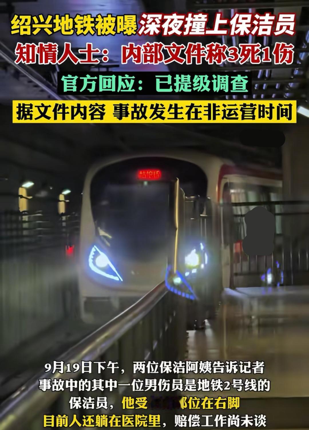 揪心!绍兴地铁深夜夺命惨案!3名保洁员当场惨死,1人重伤,真相彻底曝光全是人祸! 9月13日深夜23点40分,绍兴地铁2号线末班车停运后,4名外包保洁员做完车厢保洁转场,竟被返场检修列车狠狠撞上!3人当场没了呼吸,1人重伤躺医院,五条鲜活的底层生计瞬间崩塌😭 更离谱的是官方调查报告刚出炉!保洁员违规闯正线是表象,真正的坑藏不住:规定行走通道最窄才30厘米,人都挤不过去,逼得员工只能闯轨行区;列控员全程看着不制止还跟着一起闯,不报备不汇报,直接把人送进鬼门关! 保洁公司培训全走过场,连反光背心都没让穿,外包层层转包没人管;地铁运营方明知通道有隐患,半年多不整改,把安全当儿戏! 如今列控员已被移交坐牢,涉事单位全被重罚,可3条人命再也回不来了!底层劳动者的安全谁来兜底?这样的安全漏洞还有多少?评论区说说你的看法