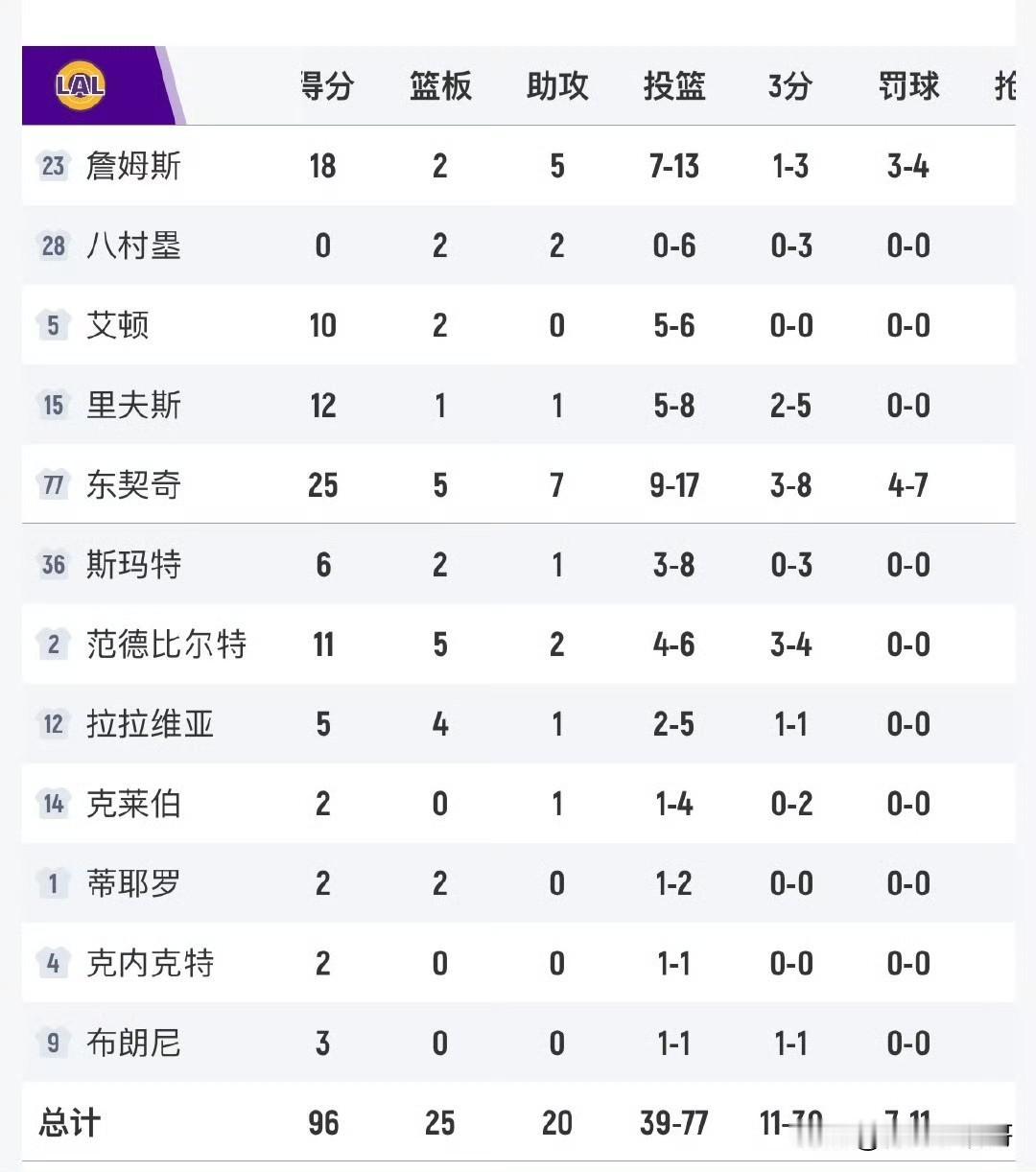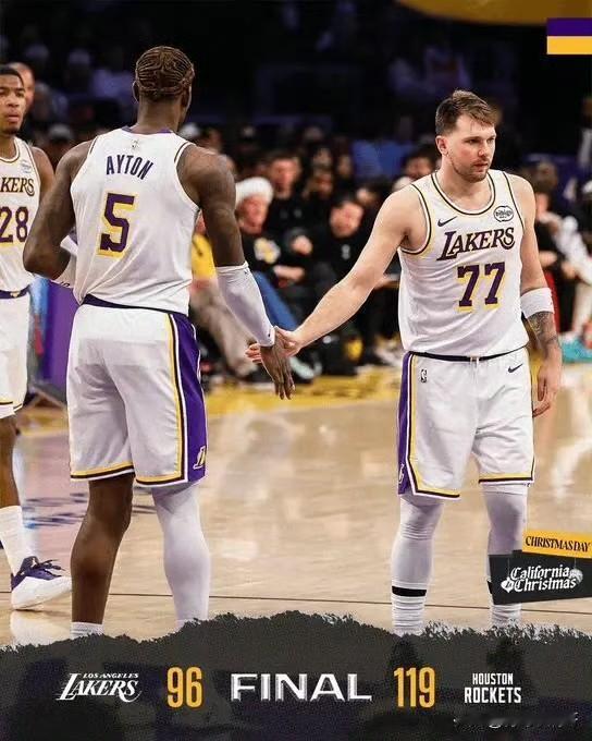 火箭炸湖了!!!湖人圣诞大战惨败火箭,遭遇三连败! 在上午刚刚结束的一场比赛中,也是圣诞大战的第四场比赛,湖人主场96-119惨败火箭,得分没有破百的同时遭遇三连败。 湖人方面: 东契奇25分,詹姆斯18分,里夫斯12分,范德彪11分,艾顿10分,这是湖人所有得分上双球员。 火箭方面: 杜兰特25分,阿门26分,伊森13分,申京14分,小史密斯16分,谢泼德13分。 本场比赛,火箭的电风扇虽然复出了但是一分未得,湖人里夫斯伤退,而艾顿这10分也是略显尴尬。 再看看火箭首发五人的正负值,全部20+,而湖人那边首发全是负的,詹姆斯-33,东契奇-25,八村-29,数据太难看了。 在举世瞩目的关键比赛,湖人让全世界看到了他们的不堪,火箭也成功炸了湖人的主场。 湖人 火箭 东契奇 詹姆斯 杜兰特 湖人比赛 nba 湖人