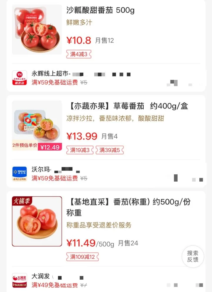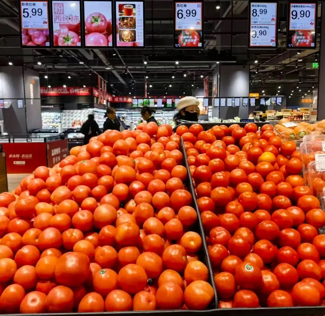据都市快报,记者猛然发现,番茄的身价不知道什么时候,居然已经“奔十”了:沃尔玛,一份约550g的自然熟番茄,标价10.99元,一份约400g的草莓番茄,标价13.99元;永辉线上超市,一份500g的沙瓤番茄,标价10.8元;大润发,一份约500g的基地直采番茄,标价11.49元……盒马便宜点,一份约500g的粉番茄,刚刚卡在了9.9元。