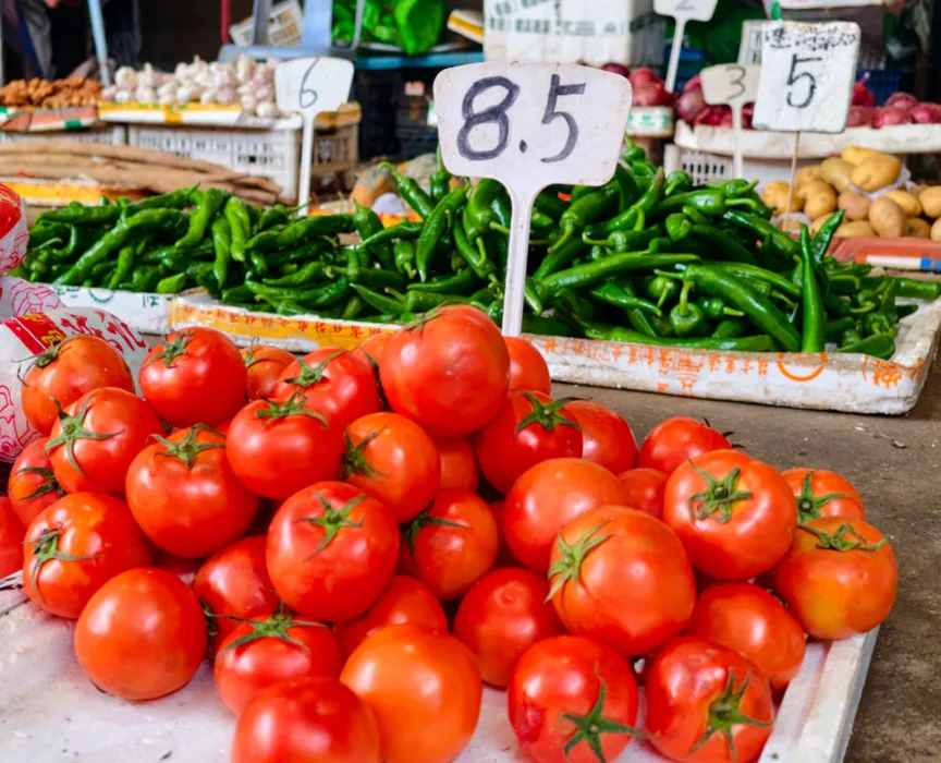 杭州市商务局发布的《杭州生活必需品市场运行情况(2025年12月15日-2025年12月21日)》显示,据对主要蔬菜批发交易市场监测统计,重点监测的17个蔬菜品种中,涨幅较大的为西红柿(即番茄)8.5元/公斤,上涨21.60%。不止番茄,茄子和青圆椒也在涨,且涨幅都超过10%。好消息是,花菜、四季豆、丝瓜都比之前便宜了不少。预计未来一周,部分茄果类蔬菜零售价呈上升趋势,青尖椒、茄子等品种价格走高,市场供应偏紧;但叶菜类和根茎类如莴苣笋、萝卜价格回落明显。