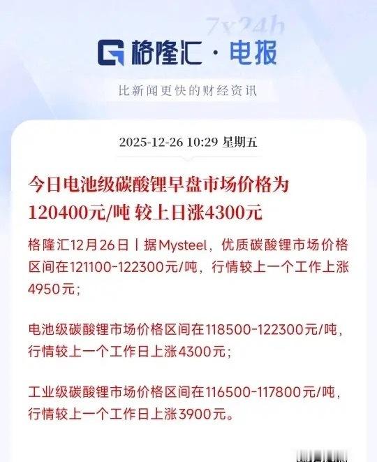 今天A股受期货影响很大,碳酸锂隔夜大涨昨晚碳酸锂直接爆发了,一吨涨了4300元,主要是以下几个原因1.宜春27个过期矿权拟注销,市场认为读为监管收紧,预期碳酸锂会出现短缺2.12月碳酸锂产量环比仅增约3%,远低于需求增速 ,减产是关键碳酸锂的涨价直接催动锂电池板块上涨,目前锂电池ETF已经涨了3.48%,趋势上面还在上涨。锂电池板块带动了光伏板块的上涨,短期看这波碳酸锂的涨价会催生整个整个新能源行业的回暖,这是资本市场愿意看到的,而且随着时间的发酵,这种情绪会带动A股指数的上涨。