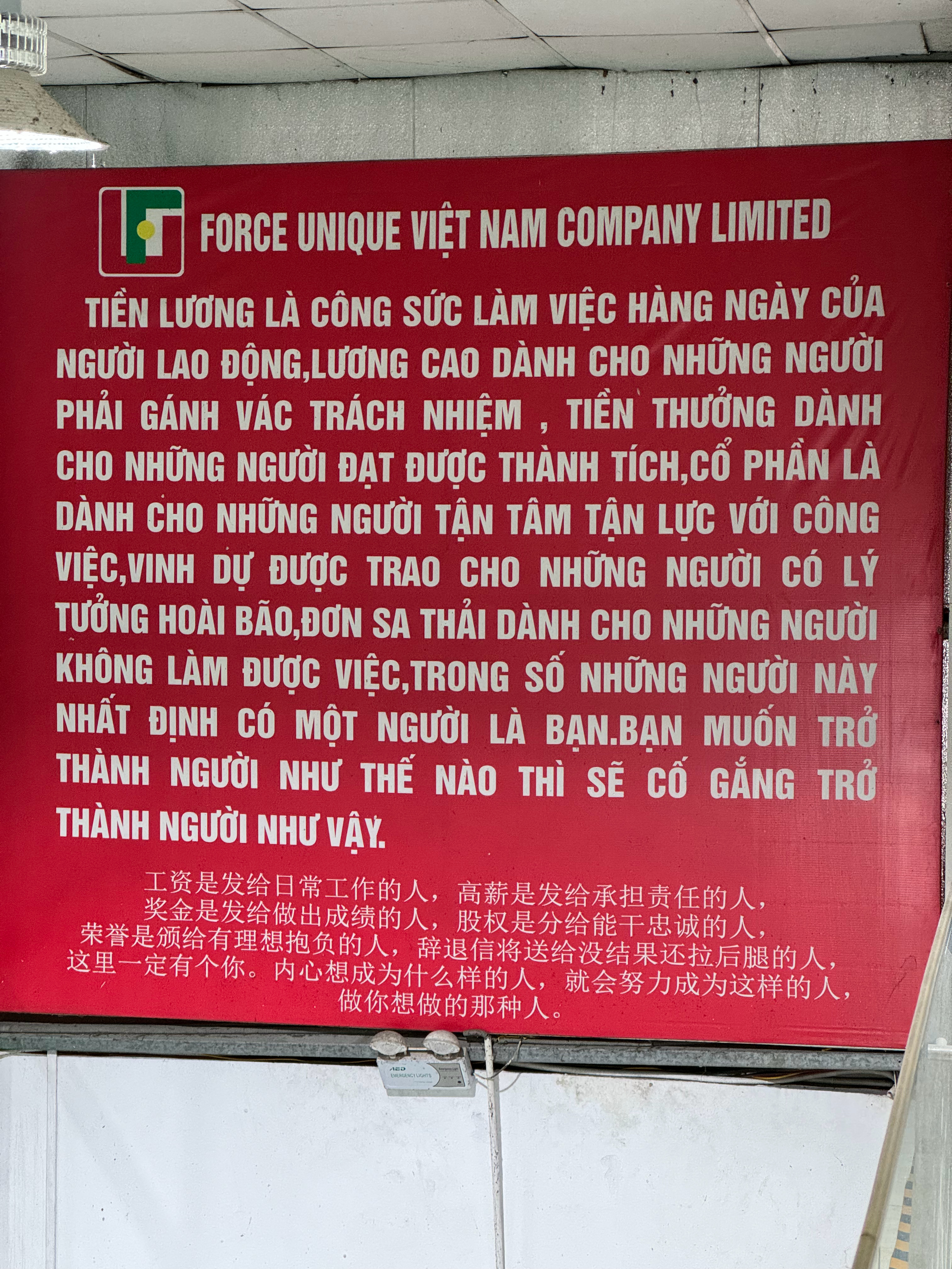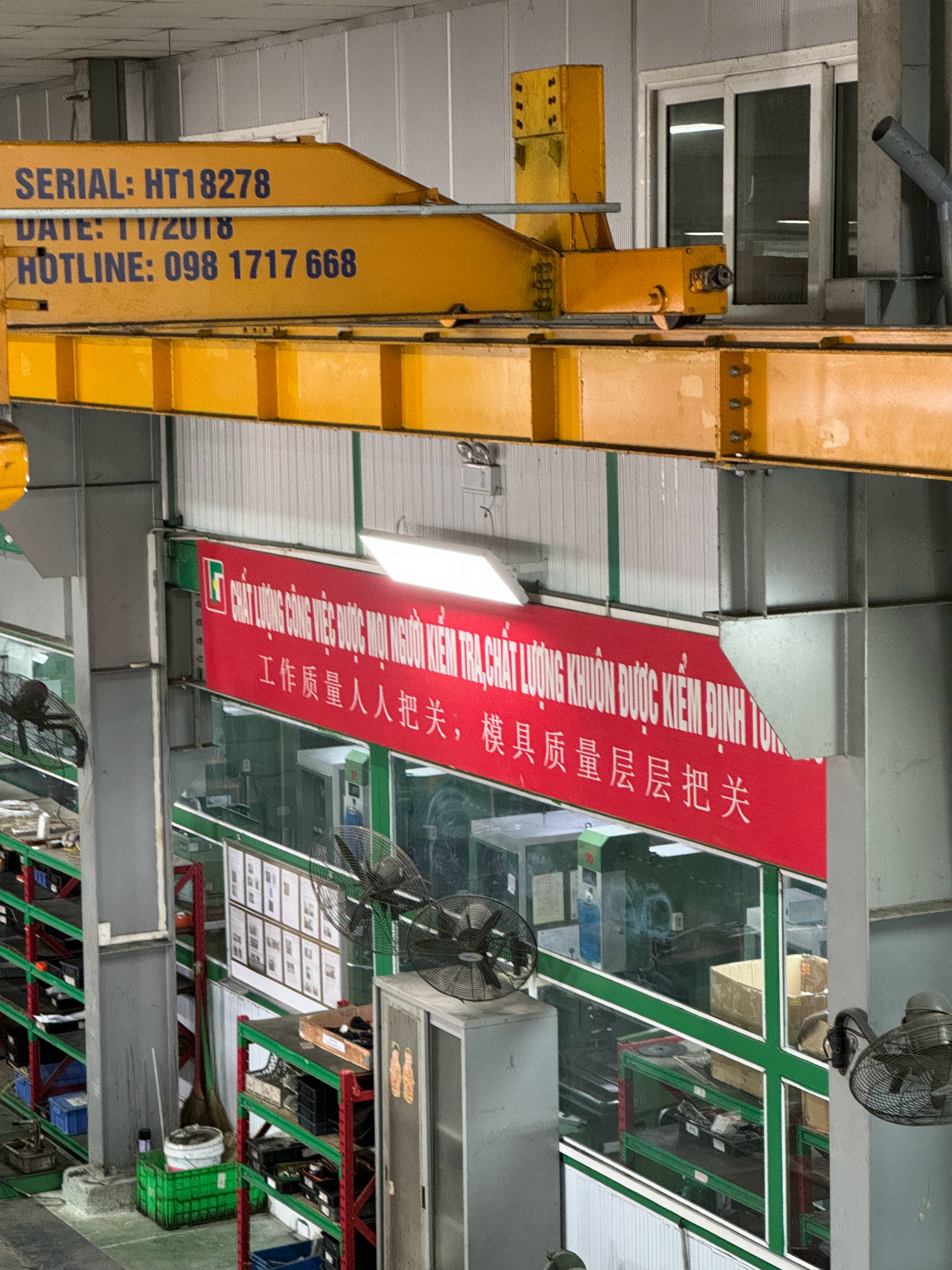 越南工厂里的标语很丰富,且已用上了中国的自动化单元(精雕)