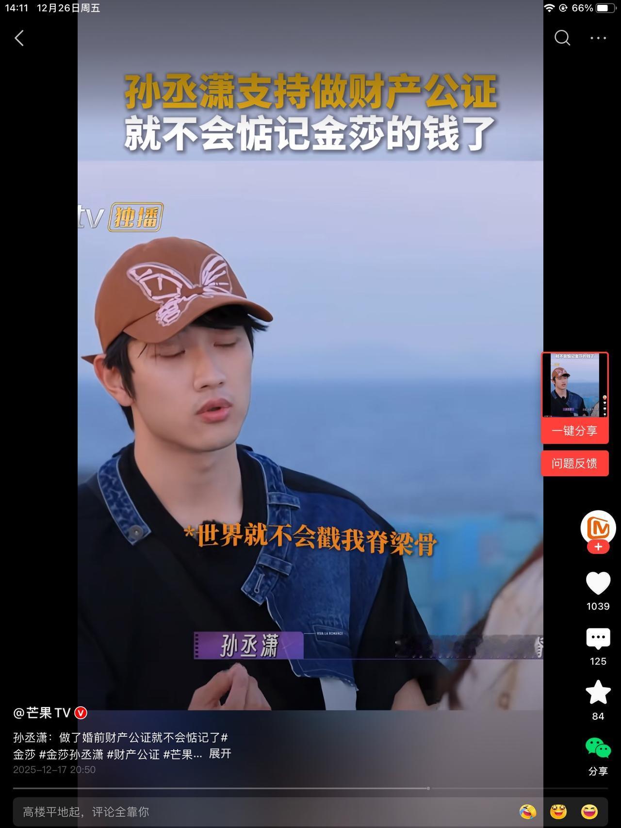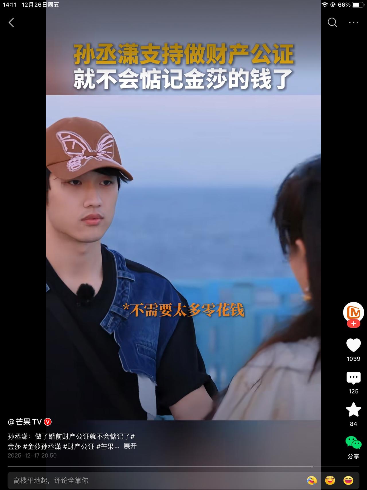 孙丞潇去做了财产公正,坦言说, 做了之后世界就不会戳他脊梁骨了。 金沙说,这词儿太难听了。 孙说,就是这样啊!以后就领零花钱就行了。 这俩的对话看似没毛病。还是有bug。 这男的领的什么零花钱,他也能赚钱吧! 这样说,感觉男的纯吃软饭的。 他可以说,我先花我挣得那部分,不够了再说。 好像也不对,他应该说我挣钱给你花。 好像也不对,挣得应该不够女明星花的。 该咋说呢?让自己更有面子一点, 让父母在农村抬起头。 也许男孩子眼里,那就是真爱。但世俗的眼里,那就是稀饭。很软。