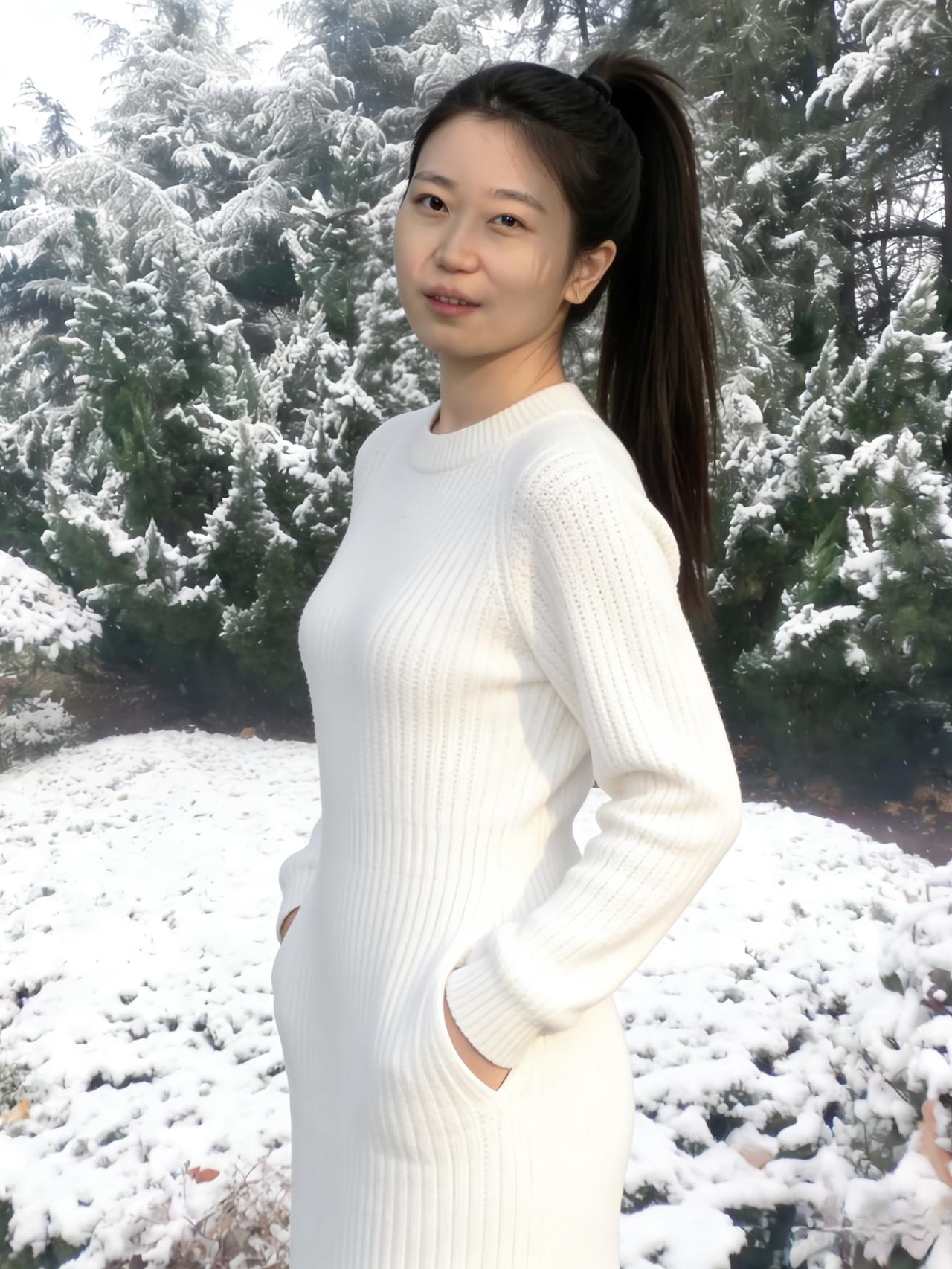 松雪濛濛覆短墙,素衣人立晚风凉。 眸中自有春潮在,不借梅花一点香。