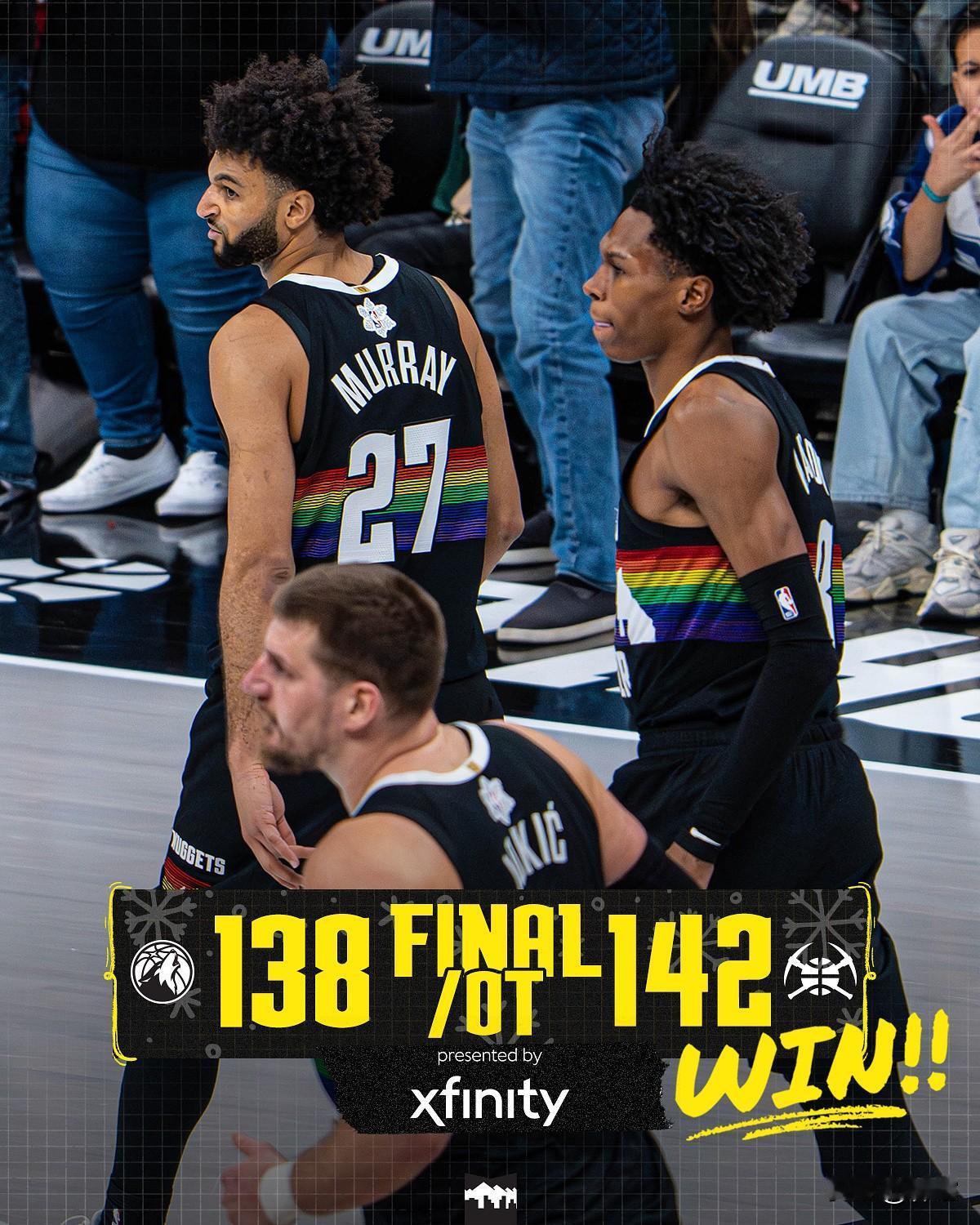 从未见过如此“丧心病狂”的比赛[笑哭][笑哭] NBA最后一场“圣诞大战”,掘金苦战至加时142-138险胜森林狼!就像之前所说,不管是不是“圣诞大战”,这场比赛都足够“丧心病狂”。 爱德华兹投中“丧心病狂”的三分球,森林狼强行115-115带着掘金加班;不得不加班的掘金和森林狼,竟然“丧心病狂”地在短短5分钟的加时赛“联手”砍下50分(掘金27-23森林狼);约基奇和爱德华兹在加时赛的表现也是“丧心病狂”,其中,约基奇加时赛18分、爱德华兹加时赛11分;全场比赛,约基奇“丧心病狂”地56分16板15助,穆雷“丧心病狂”地投中9个三分球,爱德华兹“丧心病狂”地44分。 虽然不是每场比赛都如此“丧心病狂”,但还是不得不说,NBA确实比其他一些“X”BA有意思啊……一声叹息!