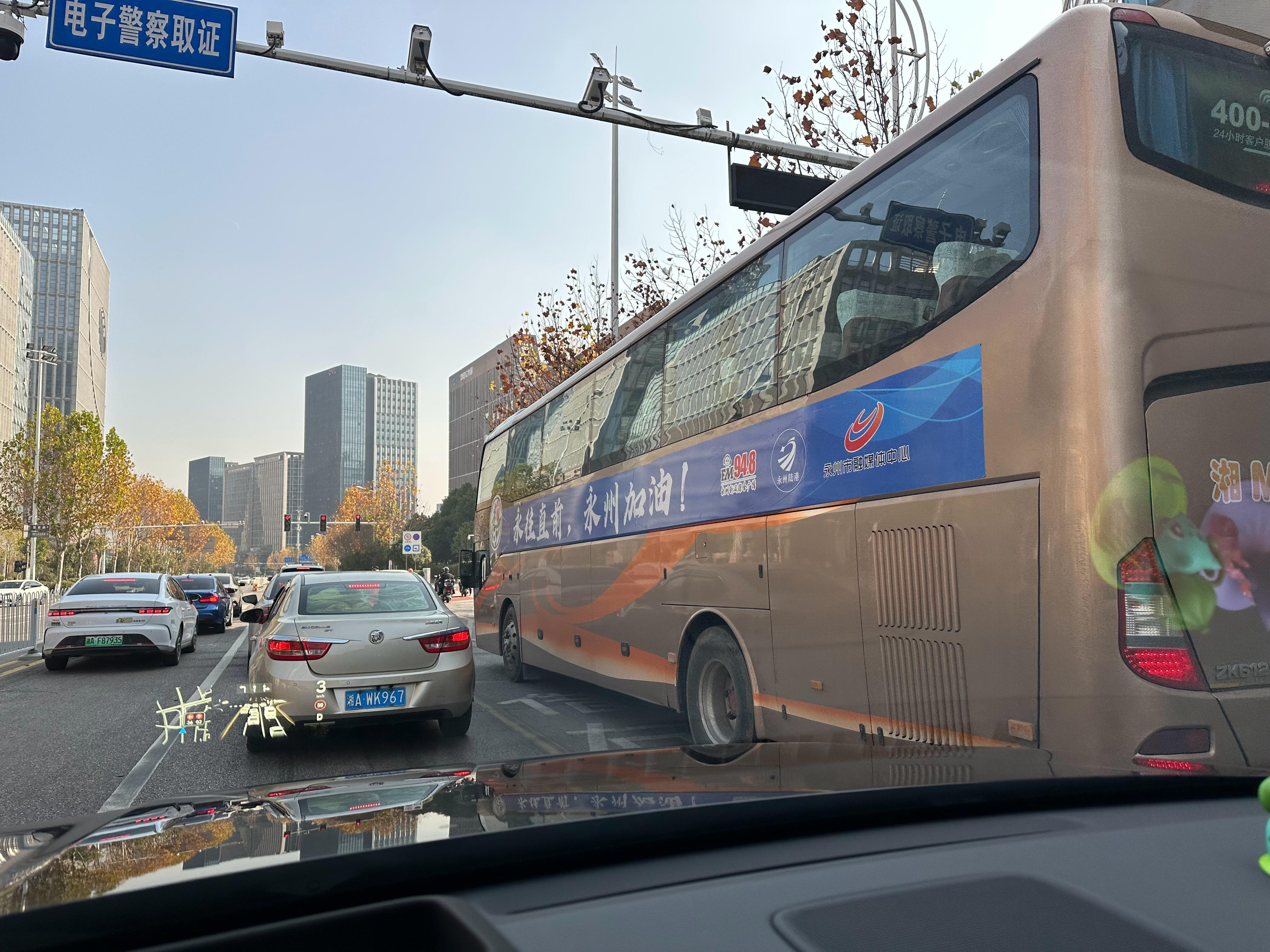 湘超决赛,路上碰到了永州队的球迷大巴。 长沙·国家网络安全产业园区长沙