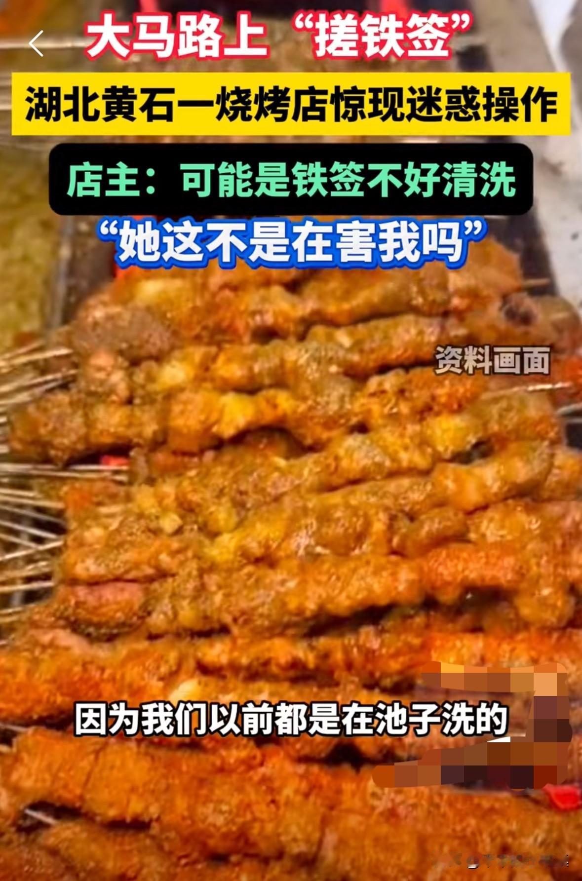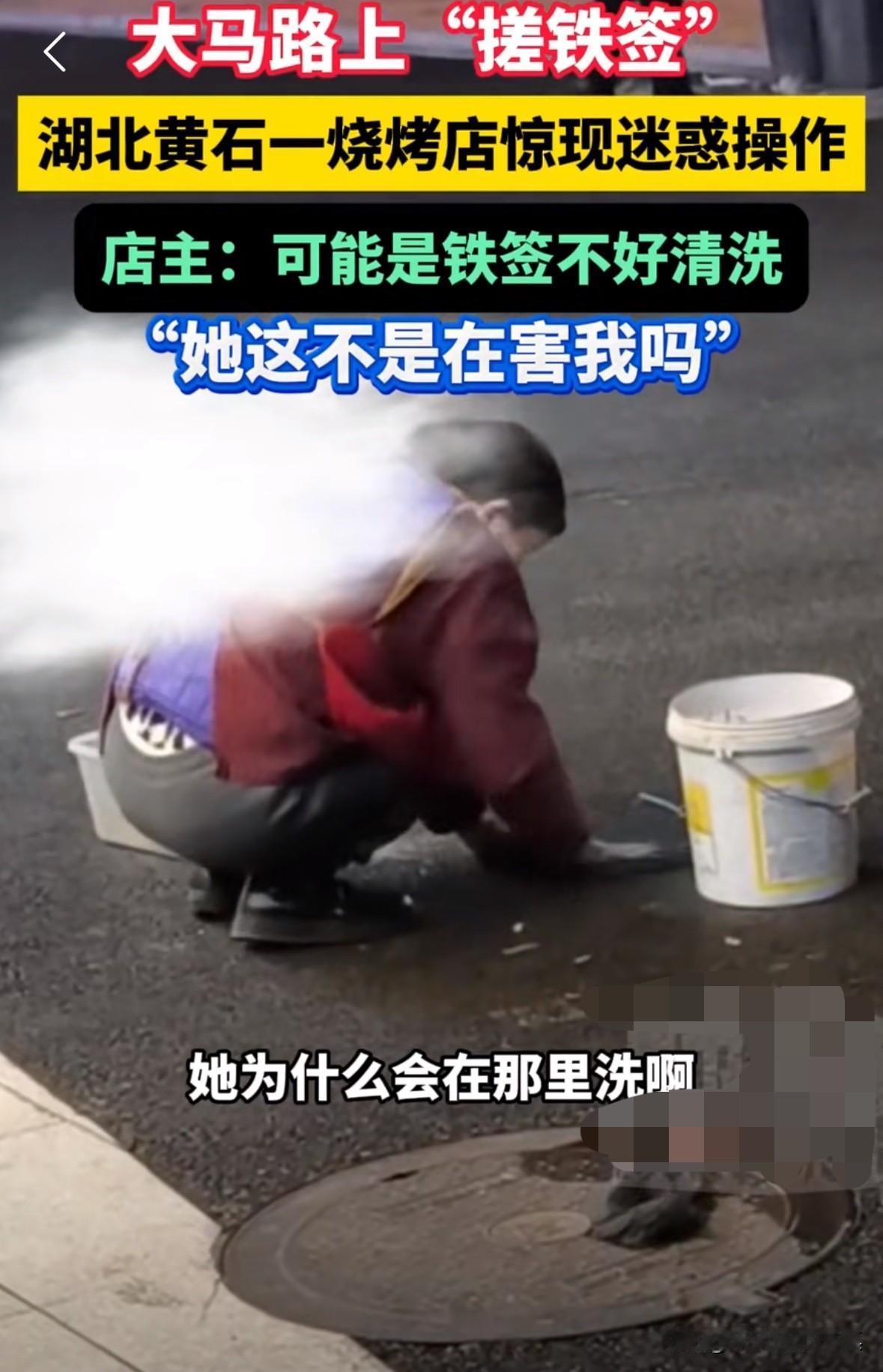 烧烤店里的员工把烧烤签子直接放在大马路上搓,被路人拍下。 店老板说:“可能是觉得签子不好洗,我们以前都是在池子里洗的,我不明白为什么她要在马路上洗签子,这是不是害我吗!” 如果这店员,在马路上洗过签字后,再在水池里用洗洁精过几遍,我觉得也可以理解。 但是看这员工已经不是第一次这样洗签子了,可能这次刚好有人拍到。 在马路上洗过后,简单用水冲一下,我是接受不了。 店老板可以澄清一下,或者把这个员工开除,要不然客流量肯定会减少。烧烤店签子