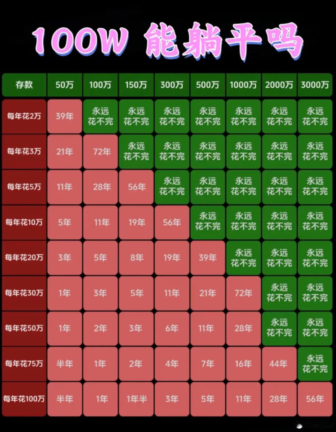 普通人躺平存款对照表! 第一级:【基础躺平 · 低配模式】 存款:100-150万 月花:4000元左右 状态:有房无贷,自己做饭,偶尔周边游 标签:够用,但得精打细算 第二级:【标准躺平 · 舒适模式】 存款:200-300万 月花:6000-8000元 状态:有房无贷,能应对突发开支,可短途旅行 标签:稳中有余,多数人的理想线 第三级:【品质躺平 · 自由模式】 存款:350-400万+ 月花:1万+ 状态:有房无贷,旅行、兴趣、学习自由安排 标签:活得舒展,精神物质都富足 💡看完对照: 你的存款进度,赶得上想躺平的心吗? 小编想说,躺平是选择,能力是底气! 与其观望,不如主动升级。 用高薪收入缩短“躺平”距离!!!