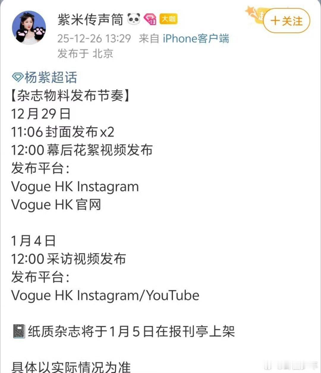 杨紫vogueHK封面发布节奏杨紫vogueHK封面预热 谁懂啊!杨紫生日卡点官宣VOGUE HK封面,这排面真的狠狠戳中粉心~ 女顶流的时尚资源一路开挂,颜值与实力双在线,预热就已经封神,正片必须狠狠期待!