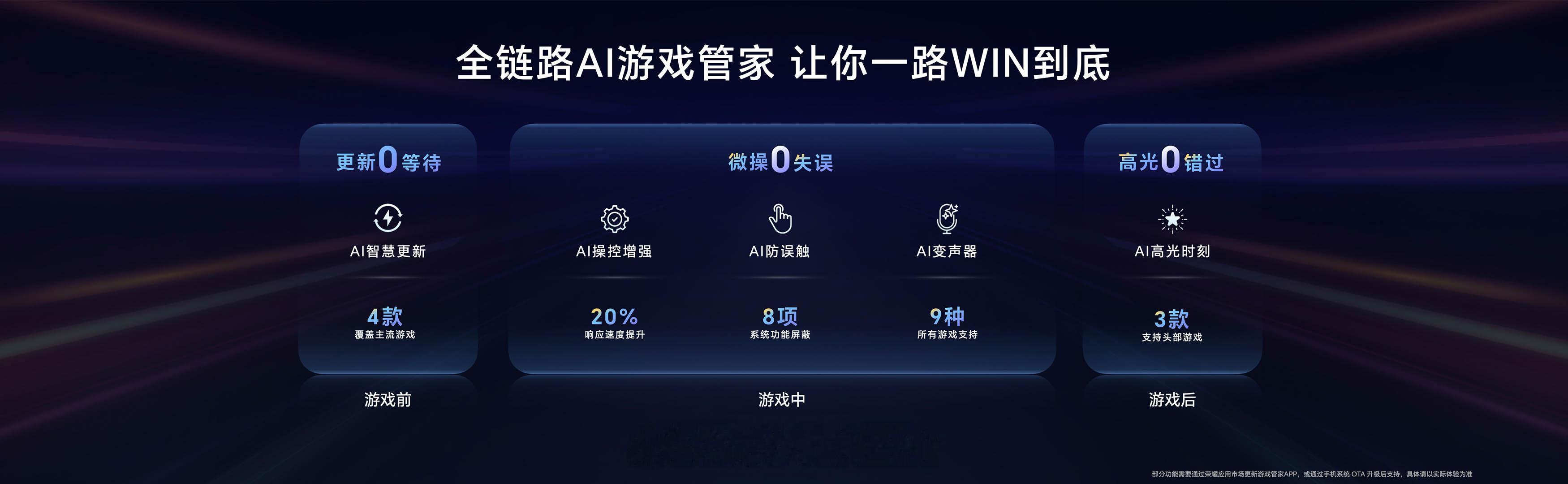 荣耀WIN系列带来了行业领先的通信和影像配置,以及更智能、全面的游戏方式,全系搭