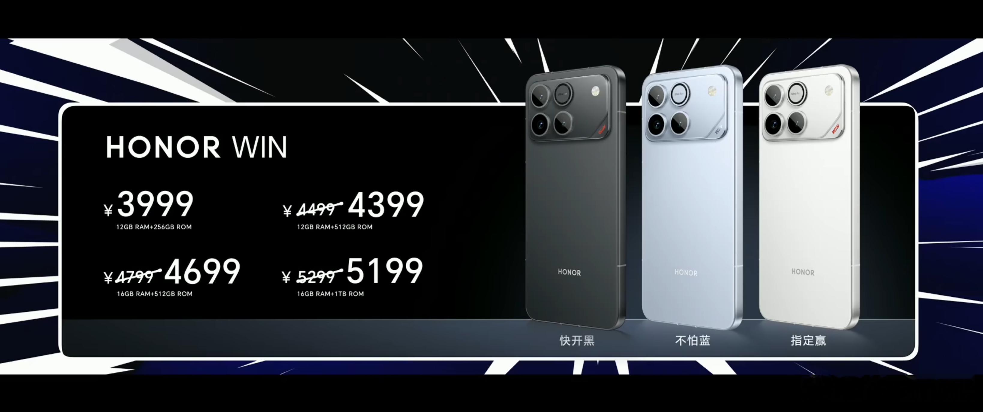 年度夯机荣耀WIN价格真香刚看完发布会,荣耀WIN系列给的配置太足了,全系100W+10000mAh超超大电池,全系主动散热风扇,全系6.83英寸185Hz超高刷护眼直屏,行业最高5920Hz PWM调光,全系金属中框,全系3D超声波指纹,全系1216重低音双扬,全系IP68/69/69K满级防水等等,多的说不完哈哈。荣耀WIN RT,12+256,2599起,荣耀WIN,12+256,3999起,这价格是不是挺香。最吸引我的就是荣耀发布会讲到的荣耀WIN可以玩星铁5小时,也就是极高负载的游戏也是人先扛不住,而不是手机先扛不住,这10000mAh大电池真是安全感满满。