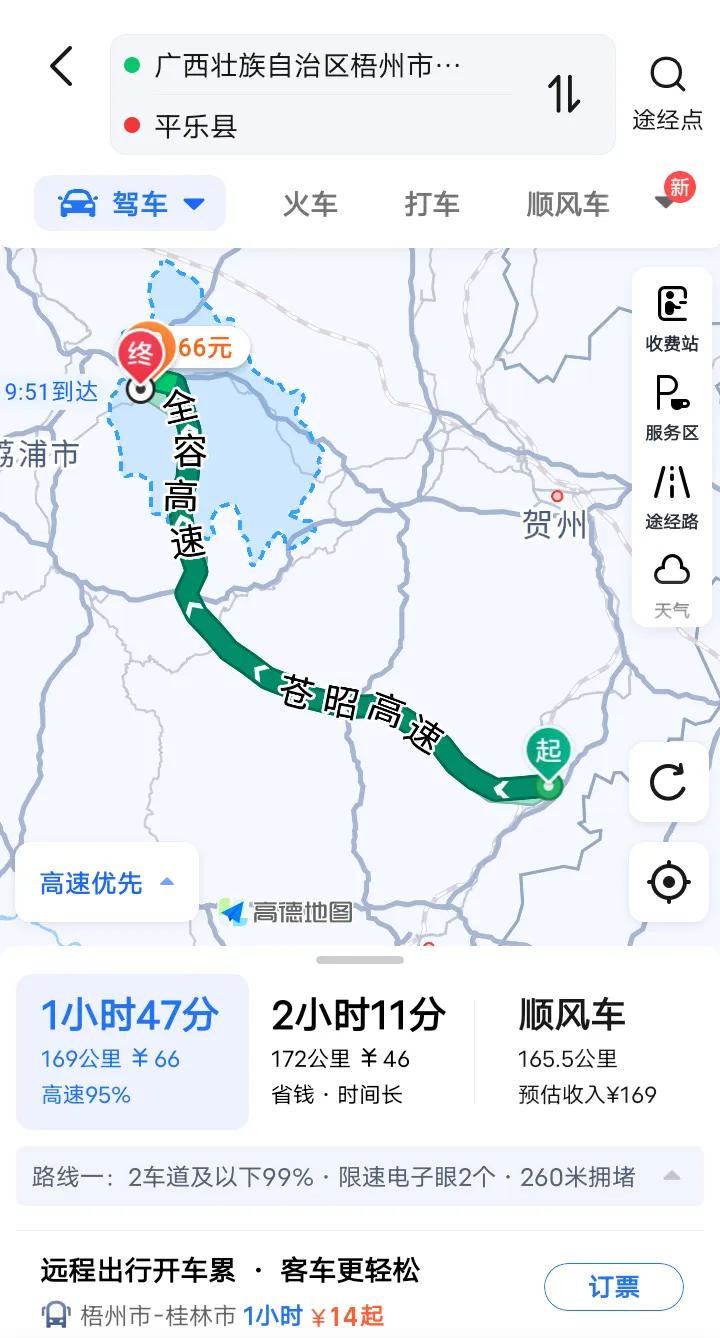 桂林平乐至贺州昭平的平昭高速与梧州苍梧至昭平的苍昭高速已于今天(12月26日)同步通车,桂林平乐开车来往梧州苍梧的通行时间缩短至2小时内,苍昭高速和平昭高速未来也是桂林开车来往广东肇庆和广州等地最便捷的省际通道,苍昭高速和平昭高速通车后将极大的方便沿途的六堡、水口、五将、北陀、桥亭等乡镇出行,对沿途区县乡镇的旅游和经济发展还有商品运输能起到重要的作用,不得不说广西这几年高速发展的真的快,高速网络越织越密,县与县通直达高速快要成为现实。