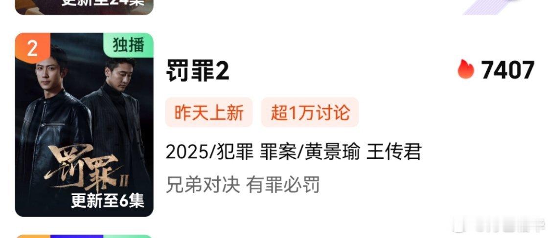 黄景瑜罚罪2黄景瑜秦枫 7400了,飙升榜1、2都是罚罪,但其实1、2没有故事联系,可以看完2再看1哦~~看完前6集就不是很操心热度了,因为观众的眼睛是雪亮滴,你节奏好,故事好,人物设计有意思,就会有人看。