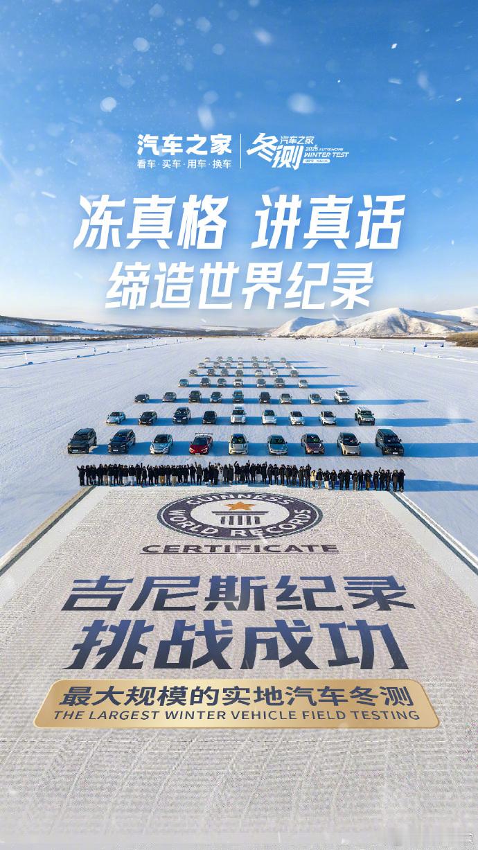 67台国产热门车型在内蒙古牙克石极寒环境(最低达-36℃)完成统一标准的冬测,涵盖续航、操控等12项测试,凭借"最大规模的实地汽车冬测"获吉尼斯世界纪录认证。测试聚焦冰雪路面低温稳控、电池性能衰减、极限冲坡等高难度场景,验证车辆在真实严寒环境下的可靠性。这是一次对中国汽车工业的"公开检阅",展现整体技术实力而非单一车型表现!二师兄玩车现场见证并同步参与,第一期内容已经见刊(戳链接:网页链接),更多内容敬请期待!中国汽车在冰雪中赢得吉尼斯认证吉尼斯纪录认证的冬季出行参考答案2025汽车之家冬季大考
