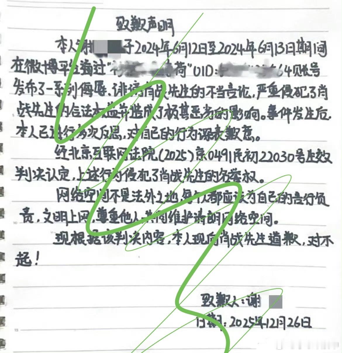 又一个嘿子给肖战手写道歉信了支持肖战全平台合理维权~肖战黑粉写道歉信肖战又一黑粉手写道歉信