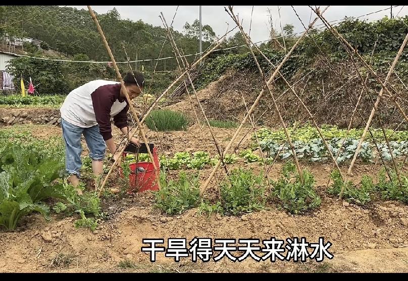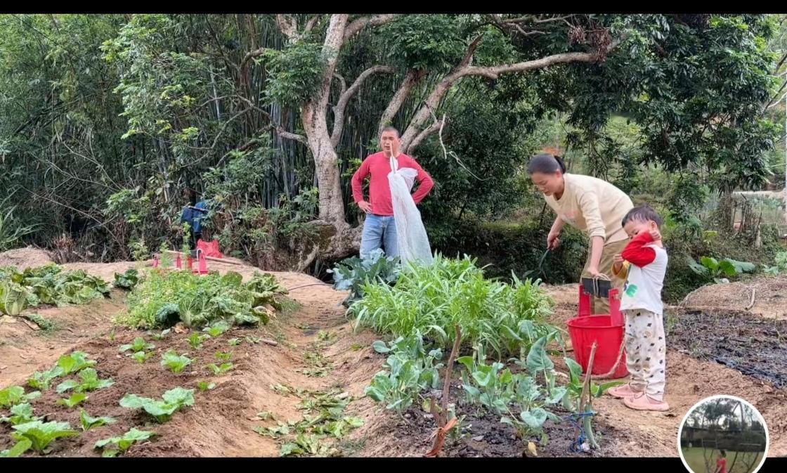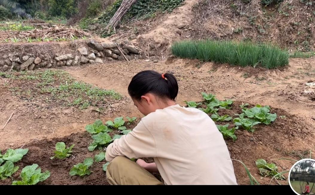 是不是只有我才感觉到一帆妈妈爸爸的菜地周边的风景很漂亮?? 我是真的喜欢广西的风景,哪怕是一帆妈妈的视频中的某一两个镜头,看着我都开心。 远远看去,还有竹子还有大树还有小溪还有小山坡。 令人想到:小桥流水人家,古道西风瘦马。夕阳西下,这半句诗词的美好。 一帆妈妈种的菜有虫子, 她还会单手捉虫子,扒掉旧菜叶,可见她种的菜还是有机肥的好,她经常挑粪去浇菜,这一点很多女人都不如她。起码她没有喊苦喊累! 看一帆妈妈视频都是心情落差很大。 前半部分视频有关菜地的会治愈心情, 后半部分看她在地上煮菜, 四个小孩抢着吃,会想到她什么时候会盖新厨房? 心情沉重,希望她家越来越好吧!一帆妈