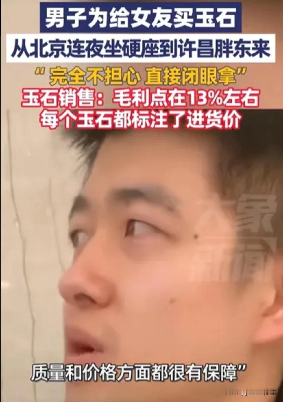 “这男人够狠!”北京一男子为让女友开心,竟然连夜买硬座,跨越700多公里,来到许昌胖东来买玉石,理由也很简单粗暴,这里的东西,他不担心质量和价格问题,他坦言:完全不担心有问题,直接闭眼拿! 网上玉石真假难辨、价格虚高,本地珠宝店也让人没底,可胖东来偏能让门外汉闭眼买——13%左右毛利、明标进货价,连质疑它“牟取暴利”的网红都被维权下架。 小伙连夜奔波图的从不是玉本身,而是商家少有的真诚与透明。当下市场缺的从来不是商品,而是让人放心的信任。胖东来的火,根本不是营销神话,而是用实在打败了套路。 你愿意为这种“放心消费”跨城奔波吗?