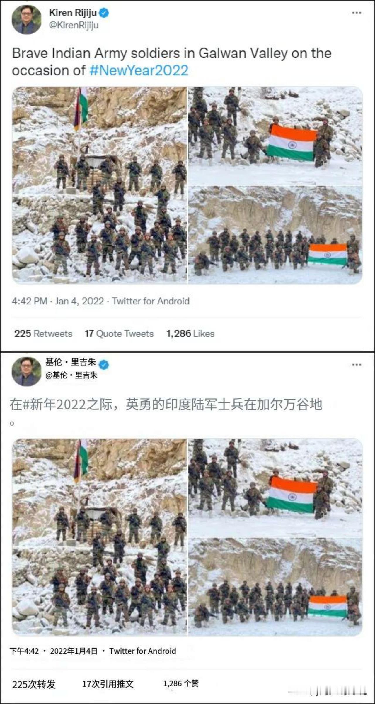 主要是想看看大家看到这些有什么感想,一副东方面孔,甚至可以说是标准的中国面孔在印度有如此的气场,高官派头倒是摆的十足,不过能被印度人恭敬的迎来送往,在印度混到如此地位看来还是有两把刷子。 最近不是西方新年圣诞节吗。在网上闲逛的时候看到这个名叫基伦·里吉朱的家伙在2022年发的东西。翻译过来就是2022年新年之际,英勇的印度陆军在加尔万谷地(加勒万谷地位应该是软件翻译错了)。 然后顺着这是名字问了一下豆包,好家伙没想到还挖出来一条大鱼,这家伙来自印度所谓的“阿鲁纳恰尔邦”就是我们中国藏南地区,也就是说这家伙其实就是一个中国人,在印度竟然成莫老仙座下的一员大将。