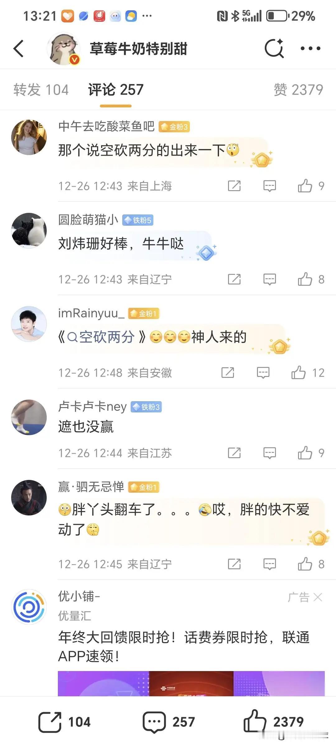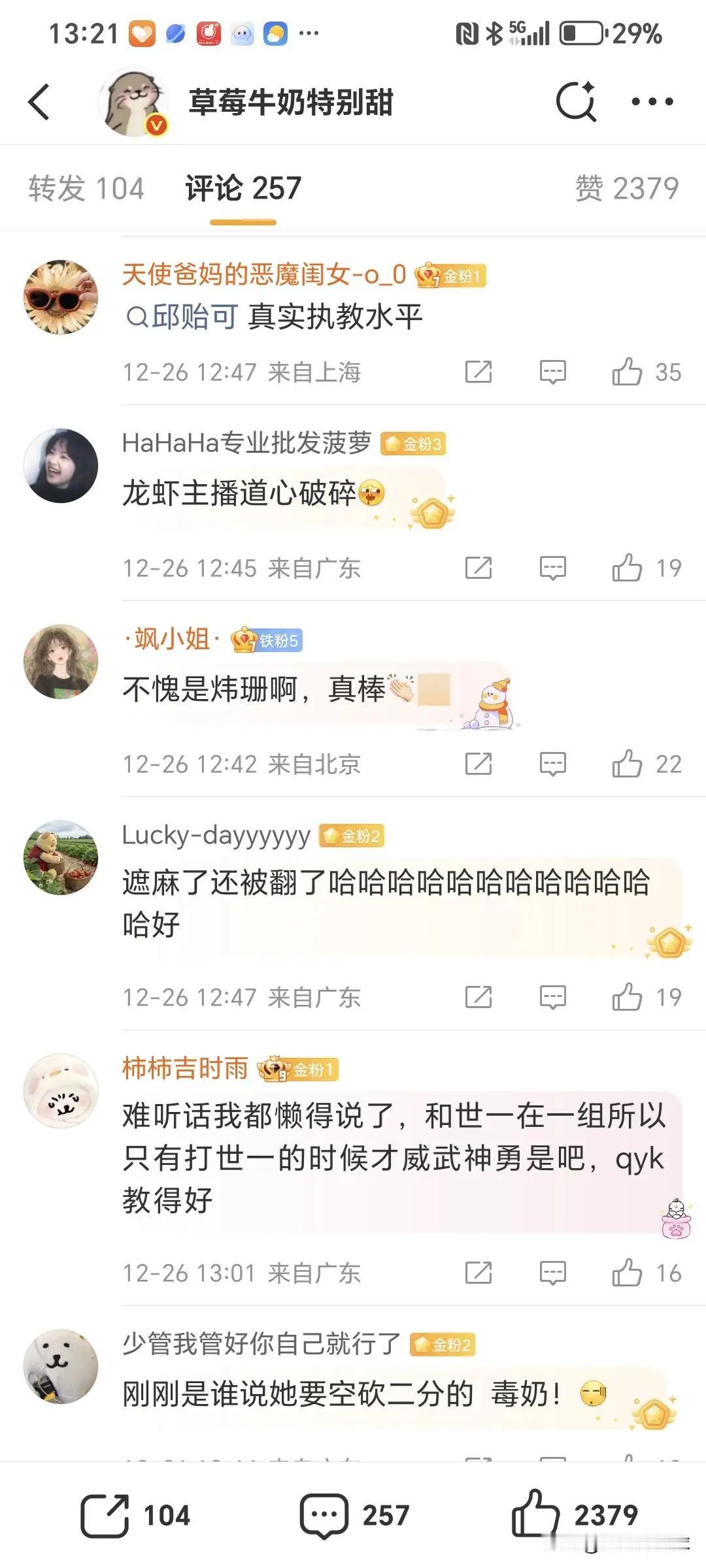 竞技体育比赛总是有输有赢,谁能光赢不输没人做到吧。 乒超联赛总决赛半决赛,深圳大学俱乐部3一2上海龙腾俱乐部,蒯曼2一3输刘炜珊,被网暴连邱贻可教练都攻击[捂脸][捂脸][捂脸]刘炜珊0一3输平野美宇,把平野美宇夸上天[捂脸][捂脸] 攻击蒯曼的还是自己队友师姐的粉丝,粉丝的不理性师父师妹也不放过,也难怪邱贻可指导寒心难过。莎莎也左右为难承受压力没法说,真影响她的状态。