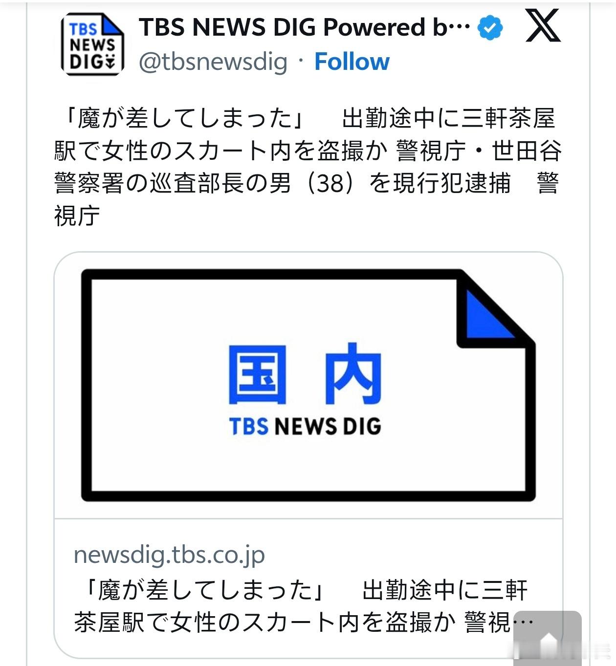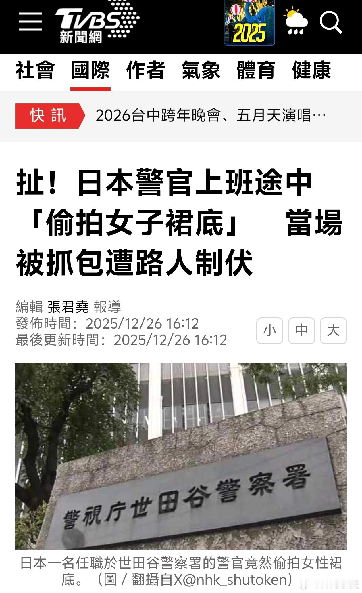 警察电梯偷拍裙底,被群众扭送警局《NHK》报导,这起事件24日发生在东京都世田谷区的三轩茶屋站内,现年38岁、任职于世田谷警察署并担任巡查部长的饭田聪在上班途中,竟趁著搭乘电扶梯时用手机偷拍1名女子的裙底。 现场有民众立刻发现饭田聪的可疑行为,当场介入并制服了他,后续饭田聪被移交给东京警视厅,警视厅强调「我们将根据调查结果、采取严厉处理」,饭田聪的律师也表示他已承认指控并表达反省之情。日本欲系统性介入南海高市早苗