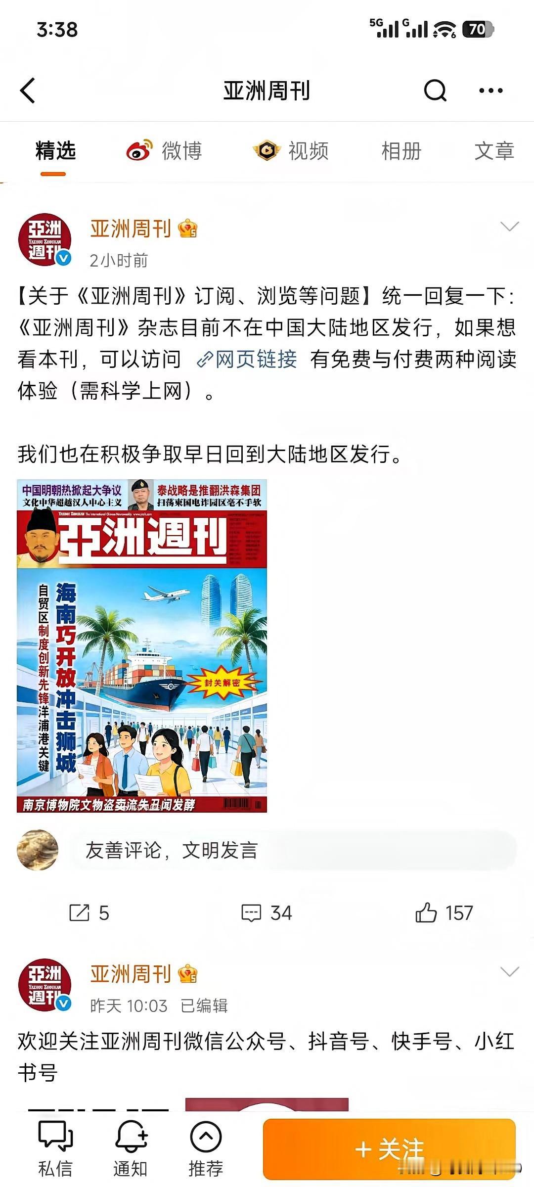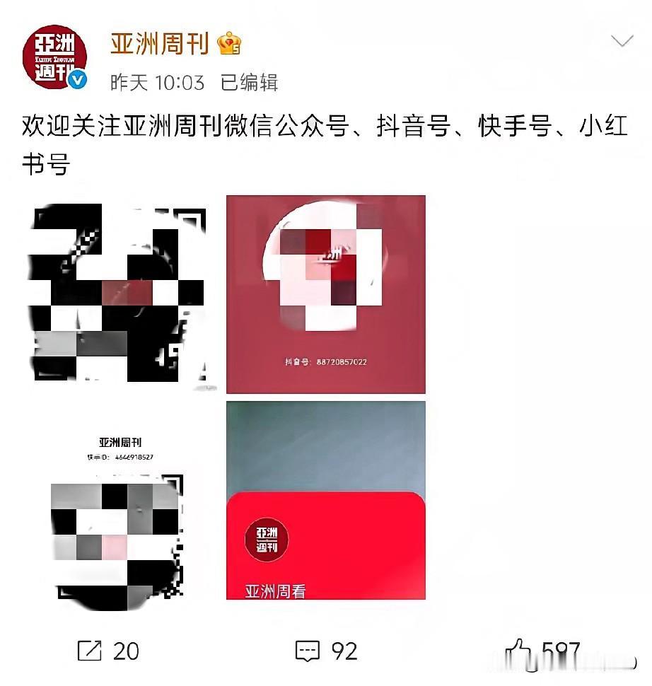 亚洲周刊真的太会整活了! ​庞家还是很聪明的,知道内地的媒体都是什么德行,所以选