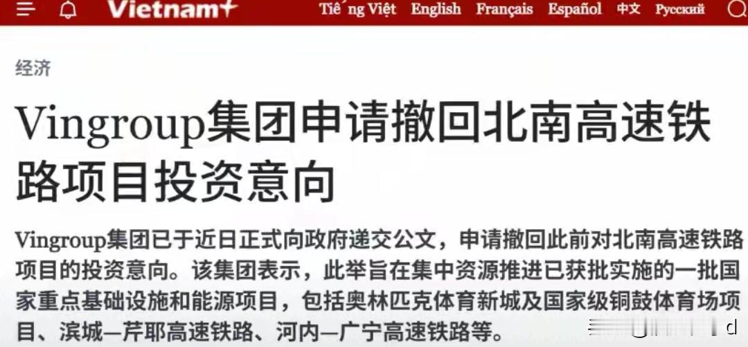 越南最大私企温纳集团签约德国西门子才8天,就宣布退出670亿美元的南北高铁项目,子公司股价跟着跳水。 项目卡壳核心是钱的事儿。温纳集团想自己掏20%,剩下80%要政府给35年零利率贷款,到期才还债。越南央行觉得这要求会搞乱银行体系,财政部直言就是要国家补贴,还会影响信用评级,死活不兜底。其他竞标方更不靠谱,长海集团融资方案和温纳大同小异,另一家公司只敢画大饼,国企只愿接配套活儿,没一家能实打实解决资金问题。 越南政府手头也紧,苏林政府改革砍了不少冗余机构,但同时上的项目太多,财政根本扛不住。更关键的是高铁不赚钱,河内到胡志明市的机票折扣价才200多,高铁票价预估600到800元,耗时还没飞机短,客流量没保障。这项目就像块烫手山芋,政府想靠它带动钢铁物流产业,企业却怕砸手里,加上不愿让外资插手国家命脉项目,融资路更窄。 越南会不会转头求中国帮忙建高铁?评论区聊聊。