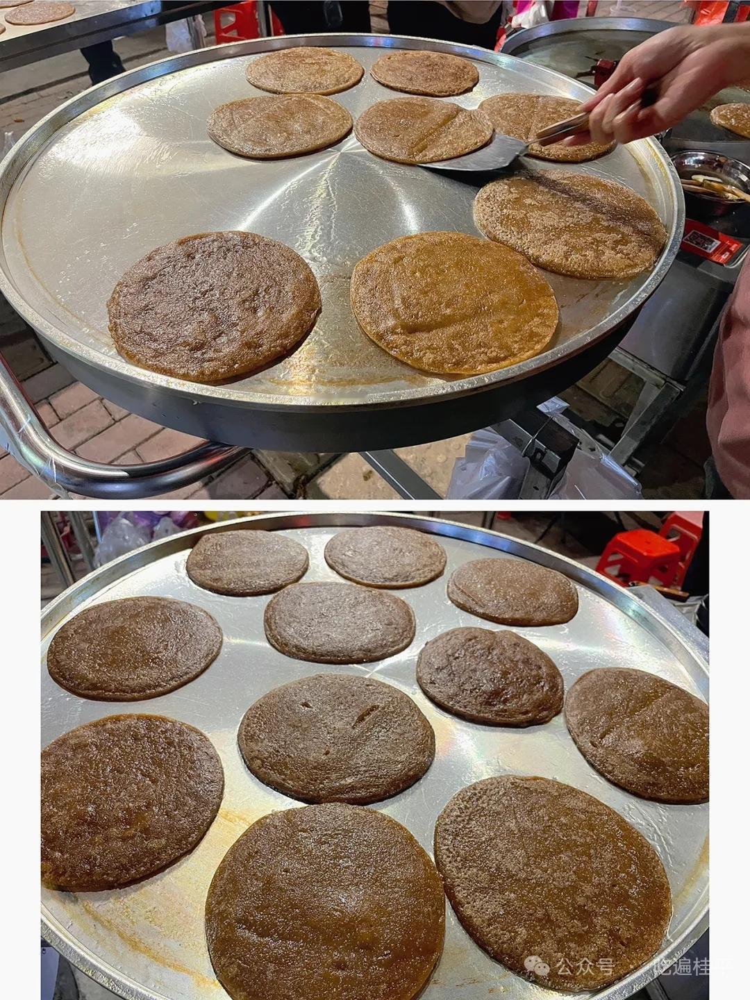 桂平这个特产真的非常好吃! 桂平有一种特产可能你不懂叫什么!但真的好好吃,在糖厂生活三区门口卖的老板把它叫“米果”(有些地方可能叫法不一样)。 “好吃的东西有时真不用太复杂”。它所用到的食材就糯米粉+红糖。然后通过放适量的水把它们充分融合一起,这就完成了食材的准备。接下来就可以抓成一小团一小团下锅煎了。 这步就要对火候有一定掌控了,但对老板来说只是简单操作。只见老板对一面进行拍打煎至金黄随后翻面继续拍打煎至金黄。一直重复这动作,直至熟透焦香。最后就会变成这种大大的饼,这样一个“米果”就算做好了。 吃起来外表香脆,里面甜甜糯糯的,个人对这种糯叽叽的东西真的难以抗拒。 最后,你们都把它叫什么呢?欢迎评论区留言...