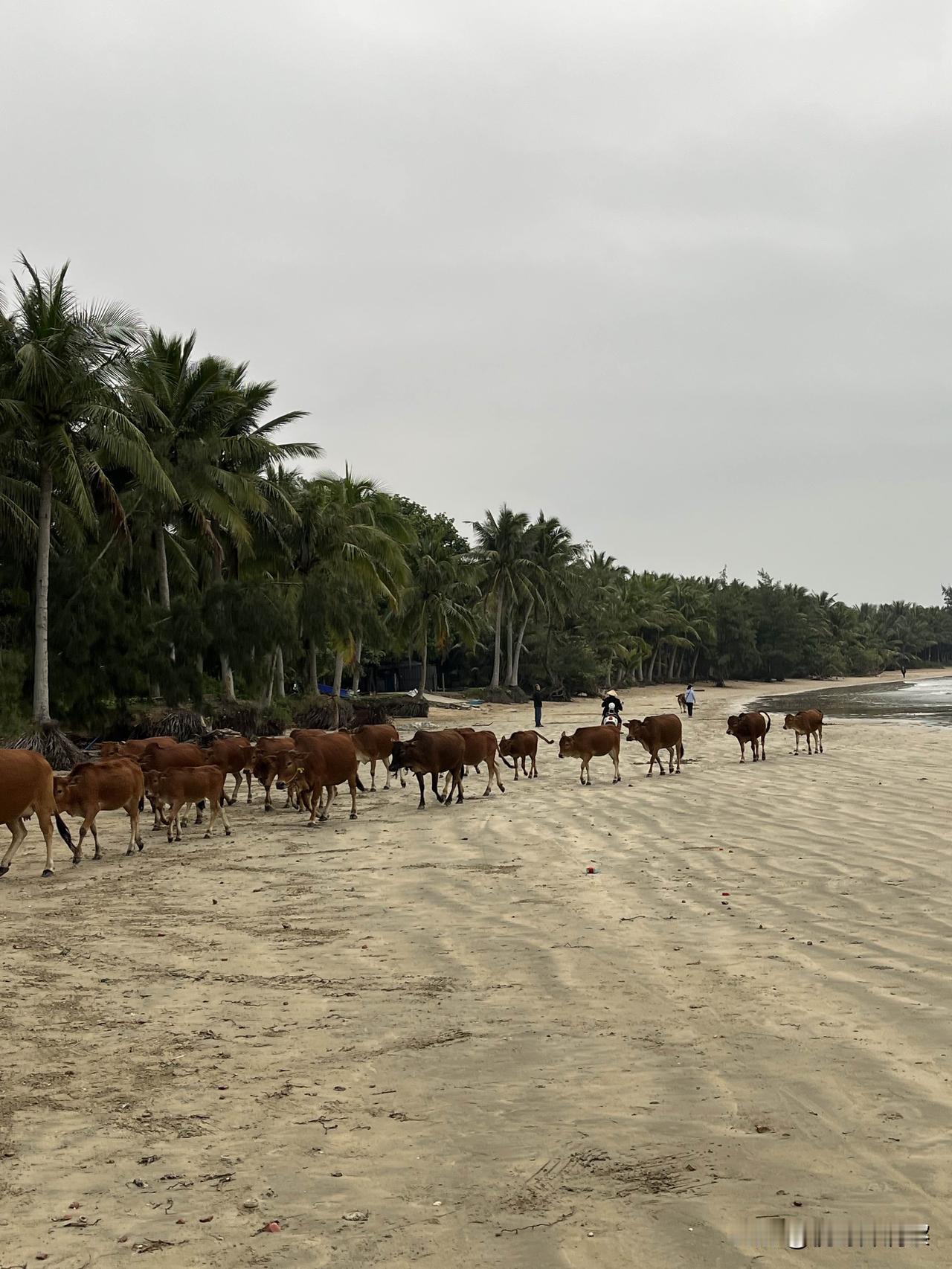亲眼目睹的经验之论,有时也会失误,视野需要不断打开。 旅途中的风景,这沙滩没有波动,没有高高低低,不是起起伏伏的,而是平面的,没有落差,很奇特。 波动的是海浪,也是感觉中的视线固化。有时候,所看到的,往往是已知的经验判断,先入为主,不一定正确。需要真实的接触,视野才能打开,意识方能改观。 大海边,有牛群在散步,也是未曾预料的