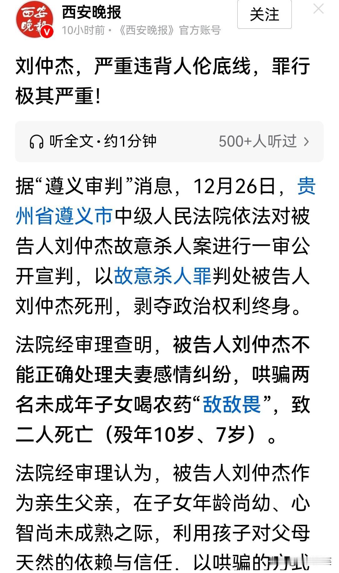 老话说,虎毒不食子,贵州遵义的这位父亲连动物都不如,竟然亲手把剧毒农药给自己的两个未成年孩子喝! 与妻子的矛盾,撒气在孩子身上,不配做人,更不配做父亲。