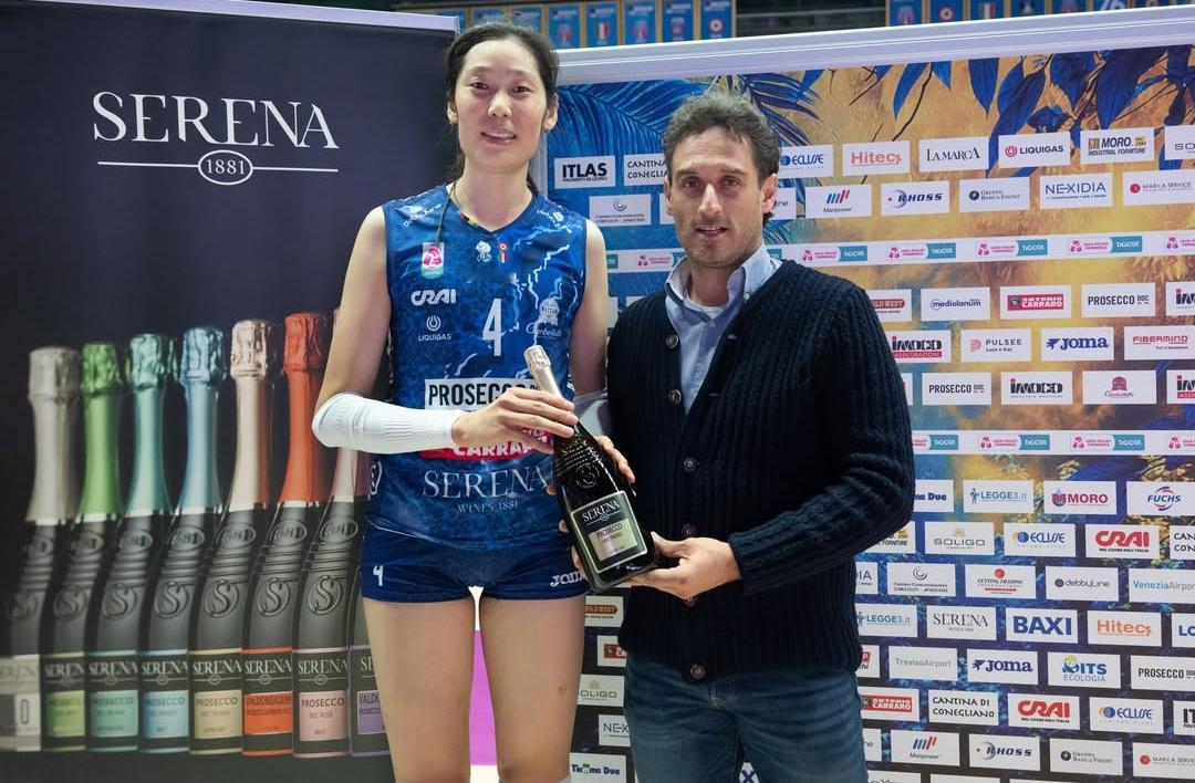 科内利亚诺发布了这张朱婷获得单场MVP的官方照片!朱婷