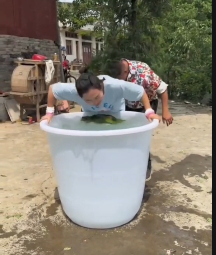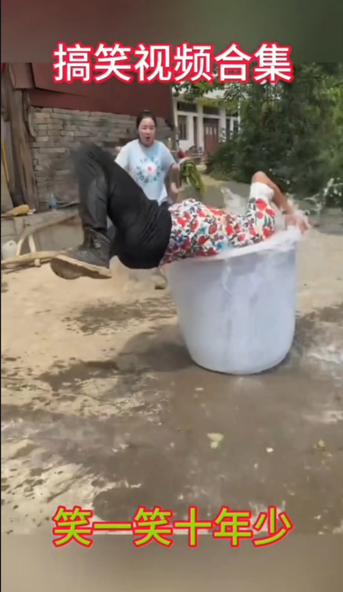 想整蛊老婆把她撞进桶,结果自己栽进去成笑料😂