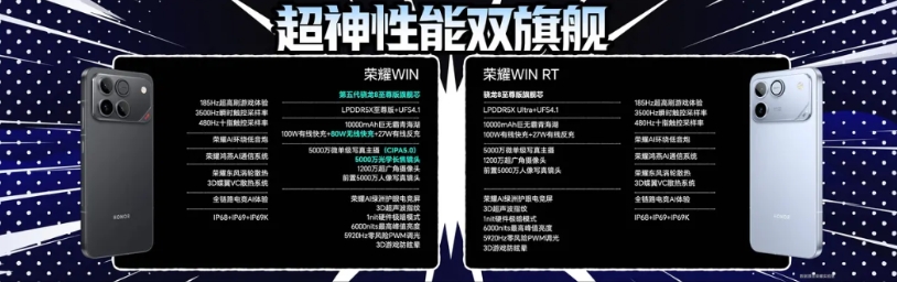 荣耀掀桌子,大家都别玩了 荣耀WIN系列竟然是2599元起售 顶配版给到了16G+1T,而且比友商多了一个80W无线快充 这一波釜底抽薪,其他家应该都看傻了 都说今年内存涨价,可是荣耀坚持住了初心 简单说说产品,全系标配10000mAh电池+100W有线快充,并且是全系金属中框+散热风扇+双1216扬声器 主要的区别是荣耀WIN RT用的是骁龙8至尊版,而荣耀WIN是骁龙8E5,多了一颗长焦镜头 跟25号某友商的产品比,哪个更有诚意,已经高下立判