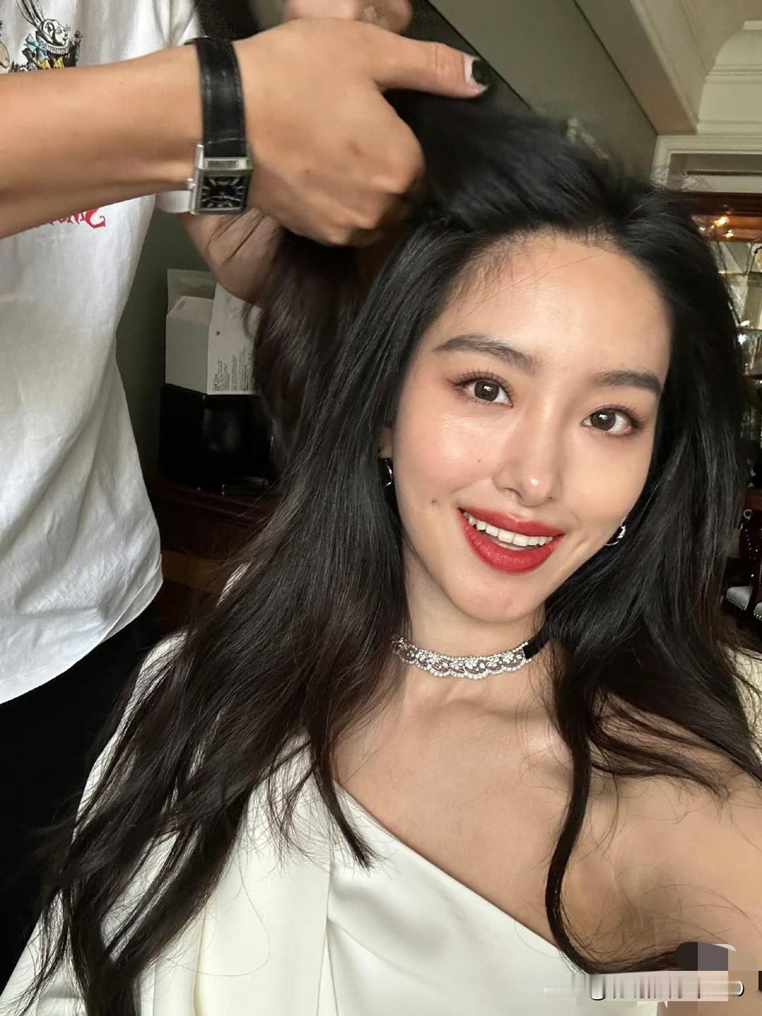 高圆圆旁边这是谁啊??身材好好啊,就是这个裙子的布料……