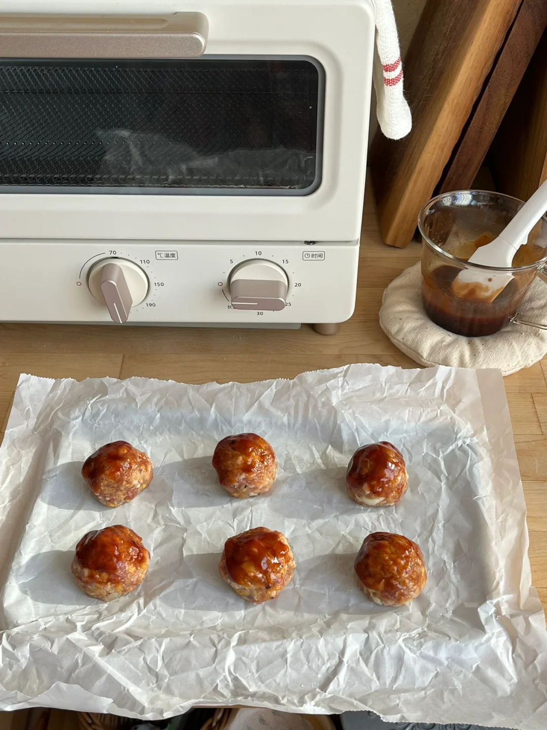 抓匀 等分成小份再搓圆 刷酱汁200度烤15分钟