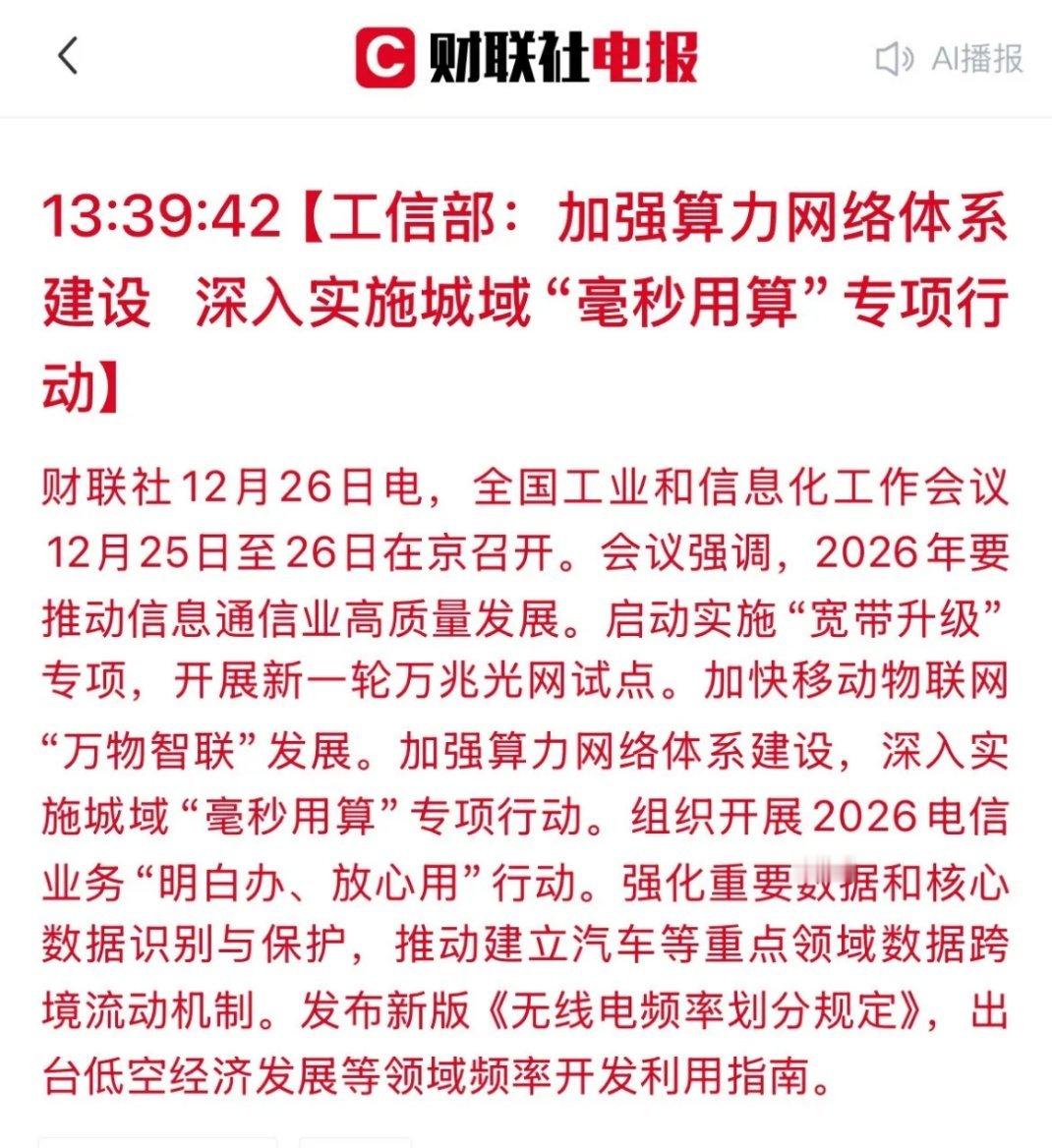 重磅定调!工信部会议敲定2026信息通信业发展路线,四大核心方向出炉,受益龙头全