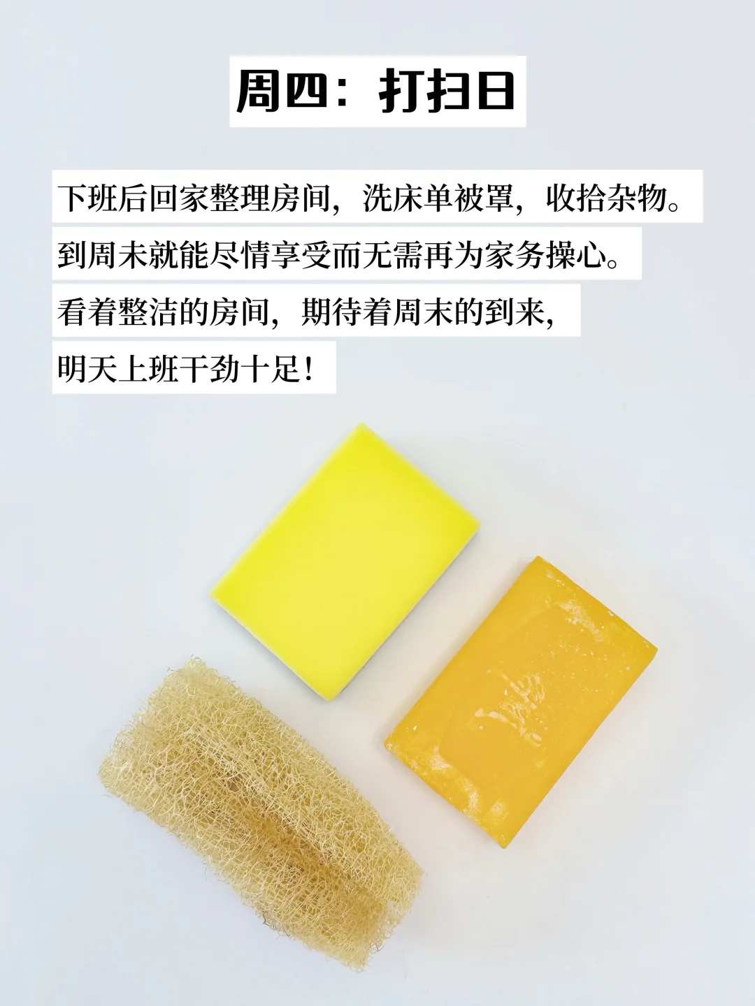 大家好[派对R],这里是努力搞钱,存到百万就退休的小猫👋 🎉周末四日游,轻松摆脱短周末烦恼! 🌞姐妹们,是不是总觉得周末时间不够用? 每次都是觉得还什么也没做,就又要上班了。 总结了一些小妙招,让你周末“延长”到四天[赞R] 1️⃣周三:小休息日 2️⃣周四:打扫日 3️⃣周五:运动日 4️⃣周六:自由日 5️⃣周日:躺平日 马上新的一周,快来试着“延长”你的周末吧~[偷笑R]
