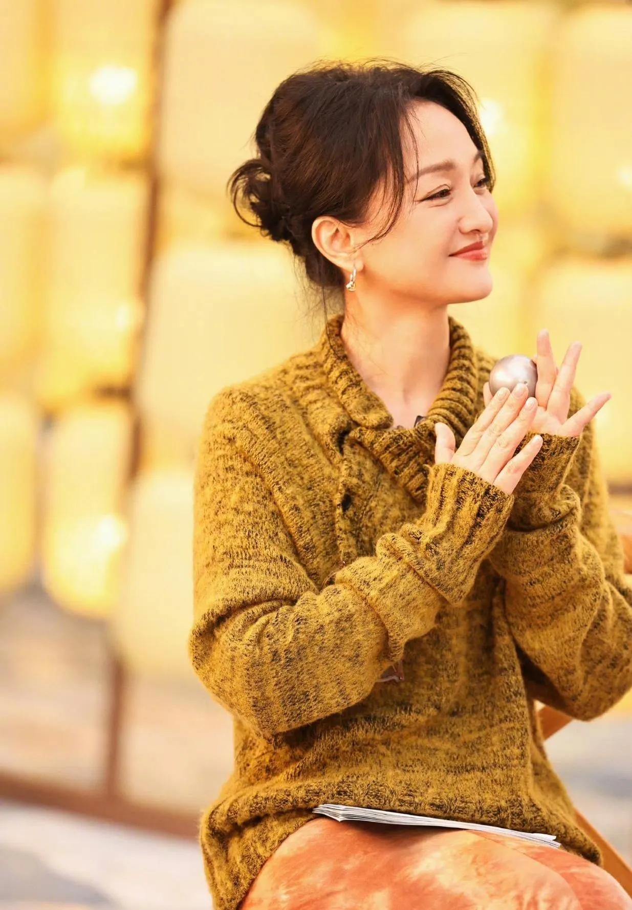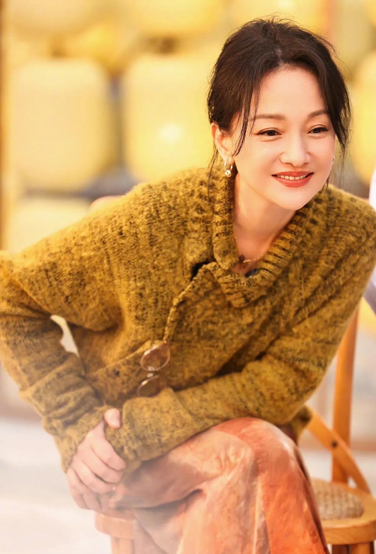 周迅中年穿搭好有韵味 芥末黄毛衣配焦糖裙,温柔复古,岁月沉淀的美太戳人!周迅