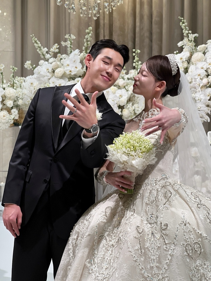 相差7岁姐弟恋❤️26岁韩国国脚宋旻揆与知名女主播郭敏善完婚