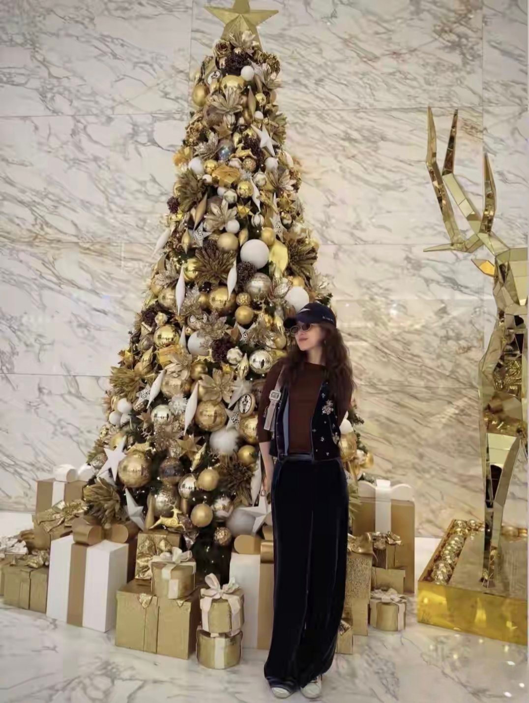 阔太章泽天在迪拜过圣诞,浑身精致,唯独小白鞋脏脏的