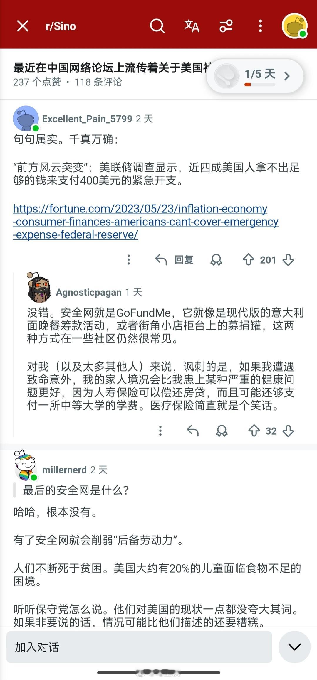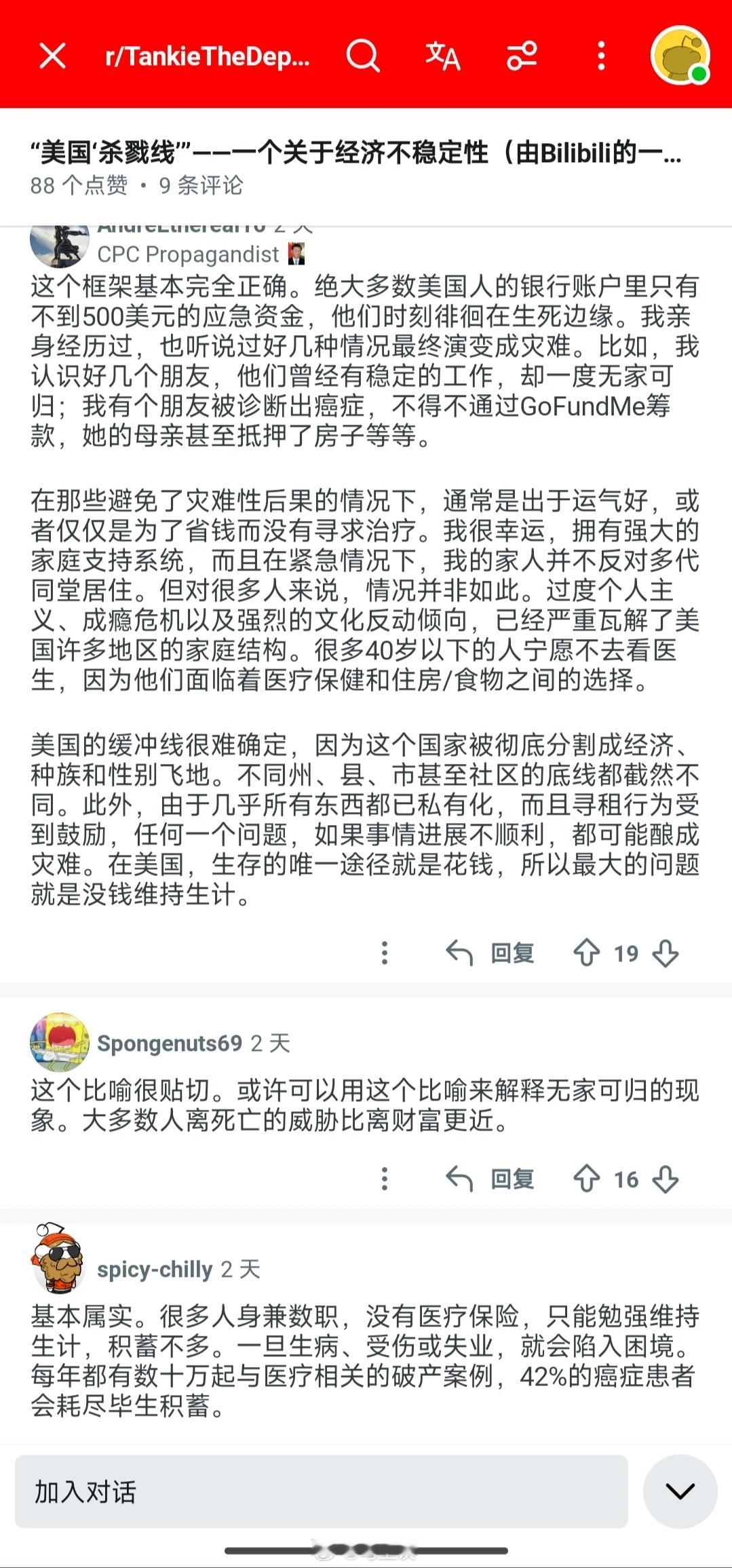 美国网友讨论斩杀线,大多数人都接受的,甚至直接说是真的。反倒是中国互联网上不少国人阴阳怪气,无法接受精神母国对中下层如此残酷。