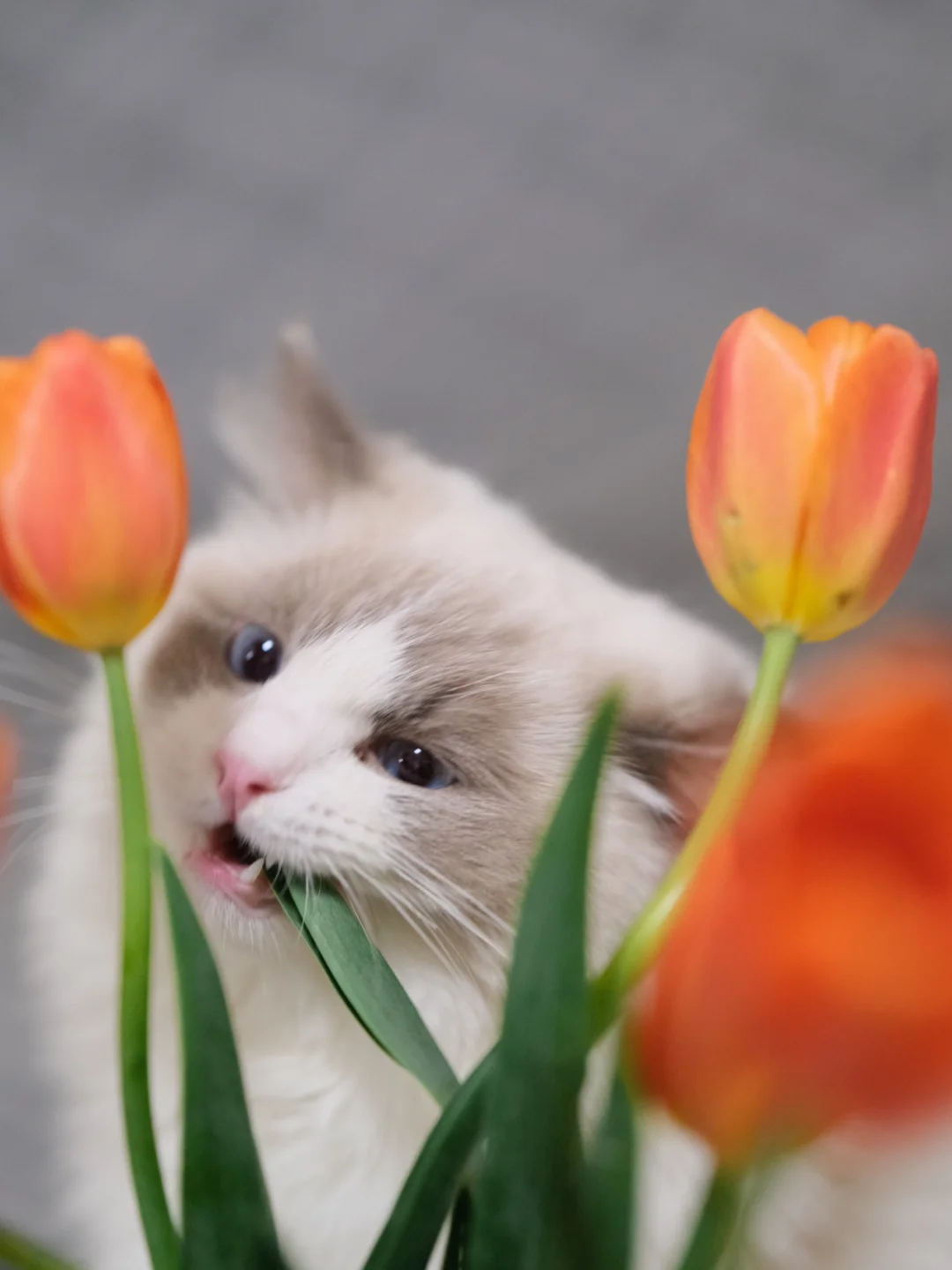 郁金香🌷 猫 猫咪壁纸 春日降临的时刻