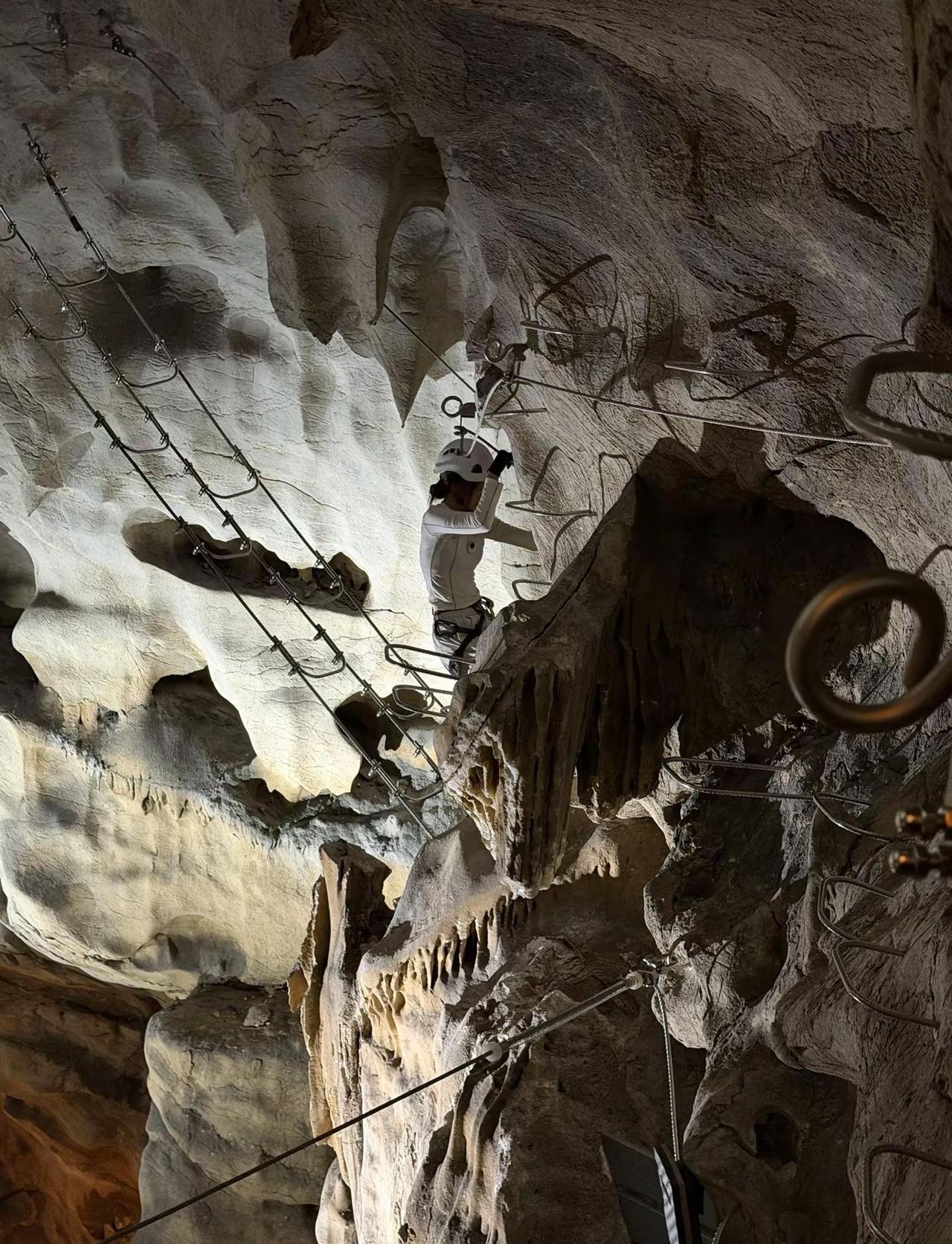 不在贵州!杭州也有溶洞飞拉达啦 溶洞飞拉达真的好好玩!!!好多次刷到山崖上玩飞拉达的笔记📝光是看着就直接腿软比起低头就是几百几千米的悬崖貌似溶洞里更适合我们这种……又菜又爱玩的?就在桐庐OMG心跳乐园里虽然没有那些山崖高但比预想的还要好玩🤣一共有A B两条路线可以选择整体比较下来A线路线更长 难度更高一些有一段很长的的钢丝路还有很长的“天梯”🪜新手需要1~1.5小时B线路线相对短一些更适合对自己体力没有自信的小伙伴会经过一段河道 新手需要30~40min(据说教练们7分钟就可以爬完🫥📍:桐庐OMG心跳乐园极限运动体验 探洞 户外探险 Fango带你体验52种运动